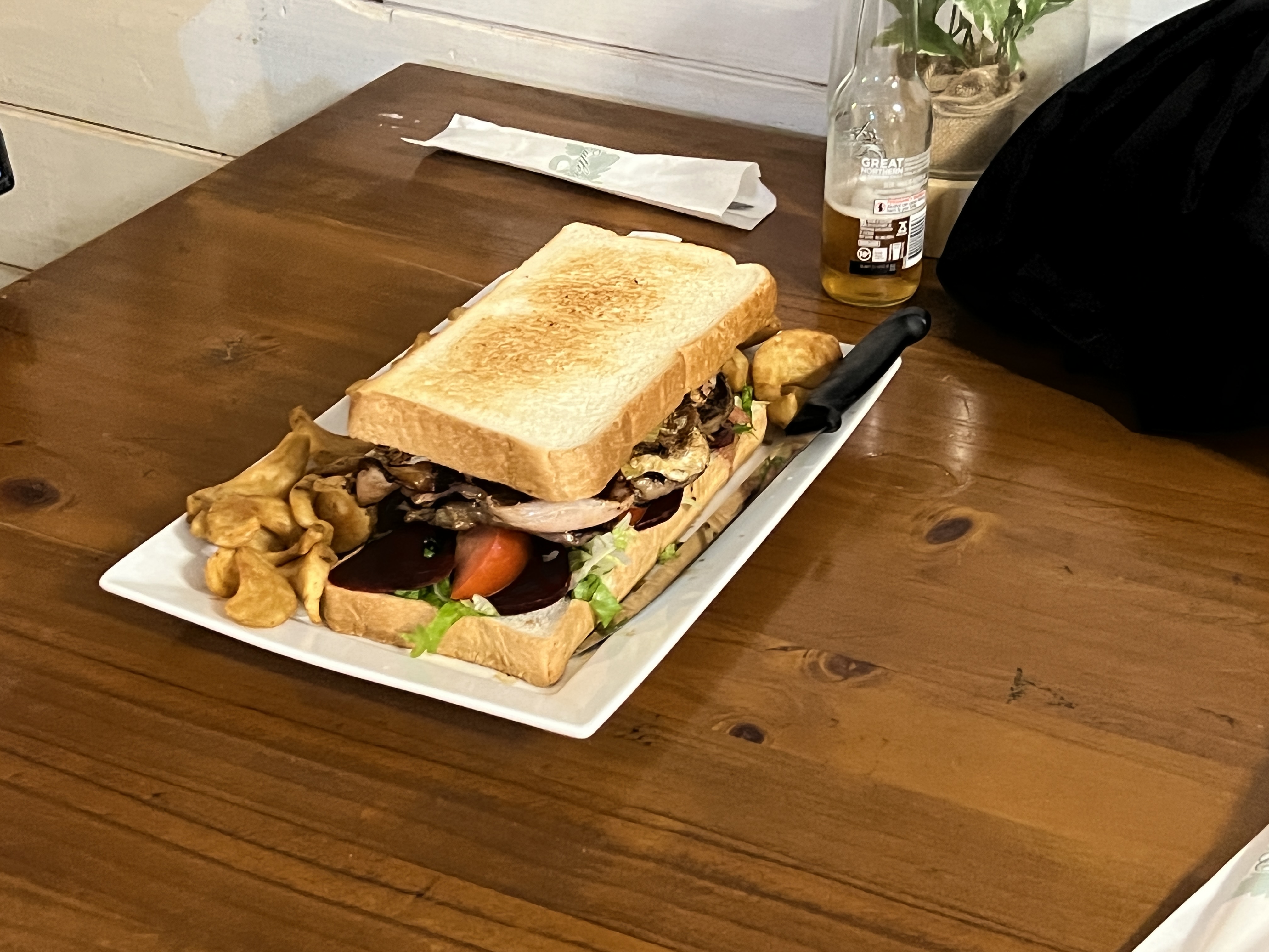 The pub is also known for its Road Train burger, 5.5 kg beef patty and all the trimmings plus chips. Only $100 but we did see it feed a table of 6 with left overs. Seemed like a meat loaf in a big bread roll. Another option is a 1.5 kg steak sandwich, more than enough for the two we saw dive into it.