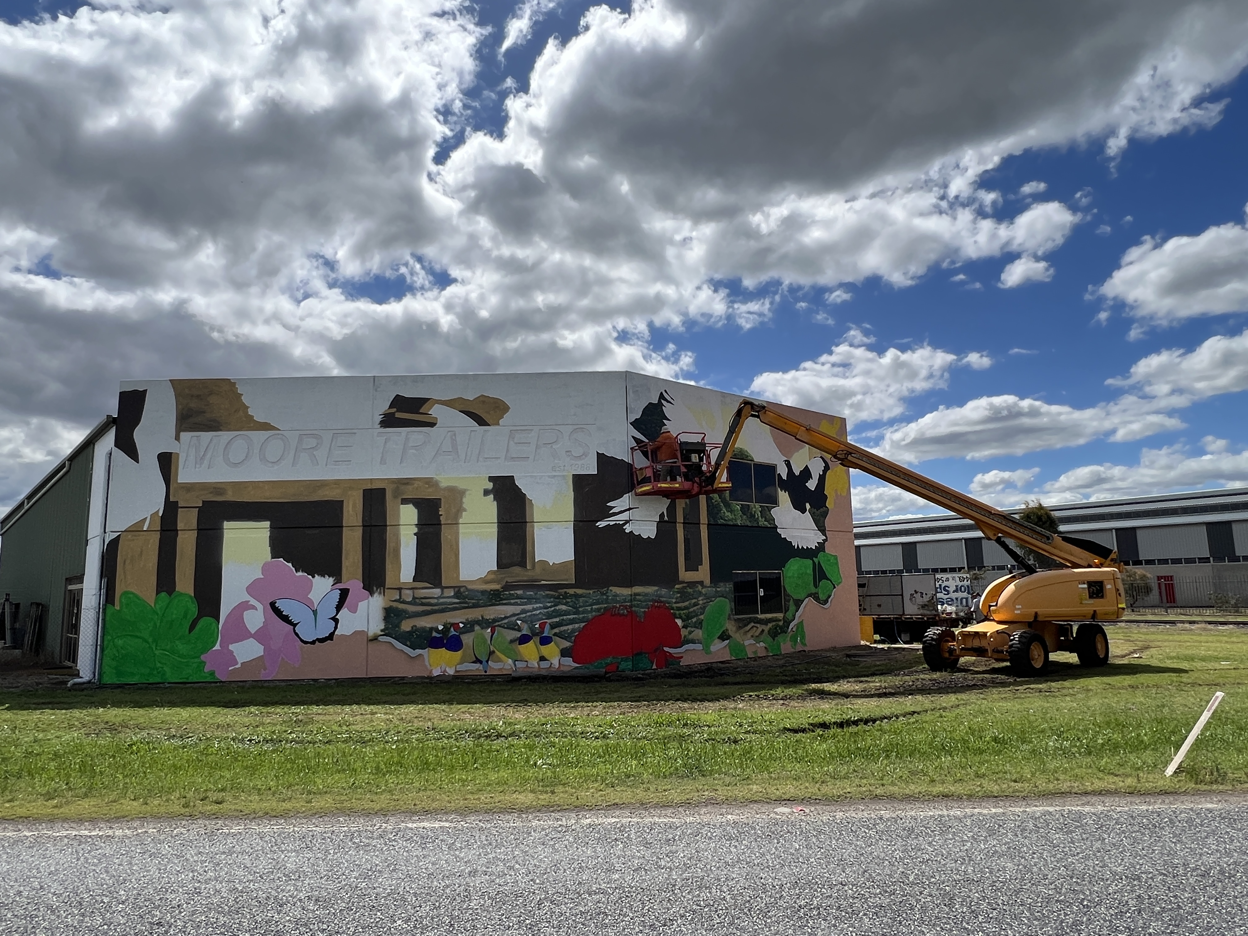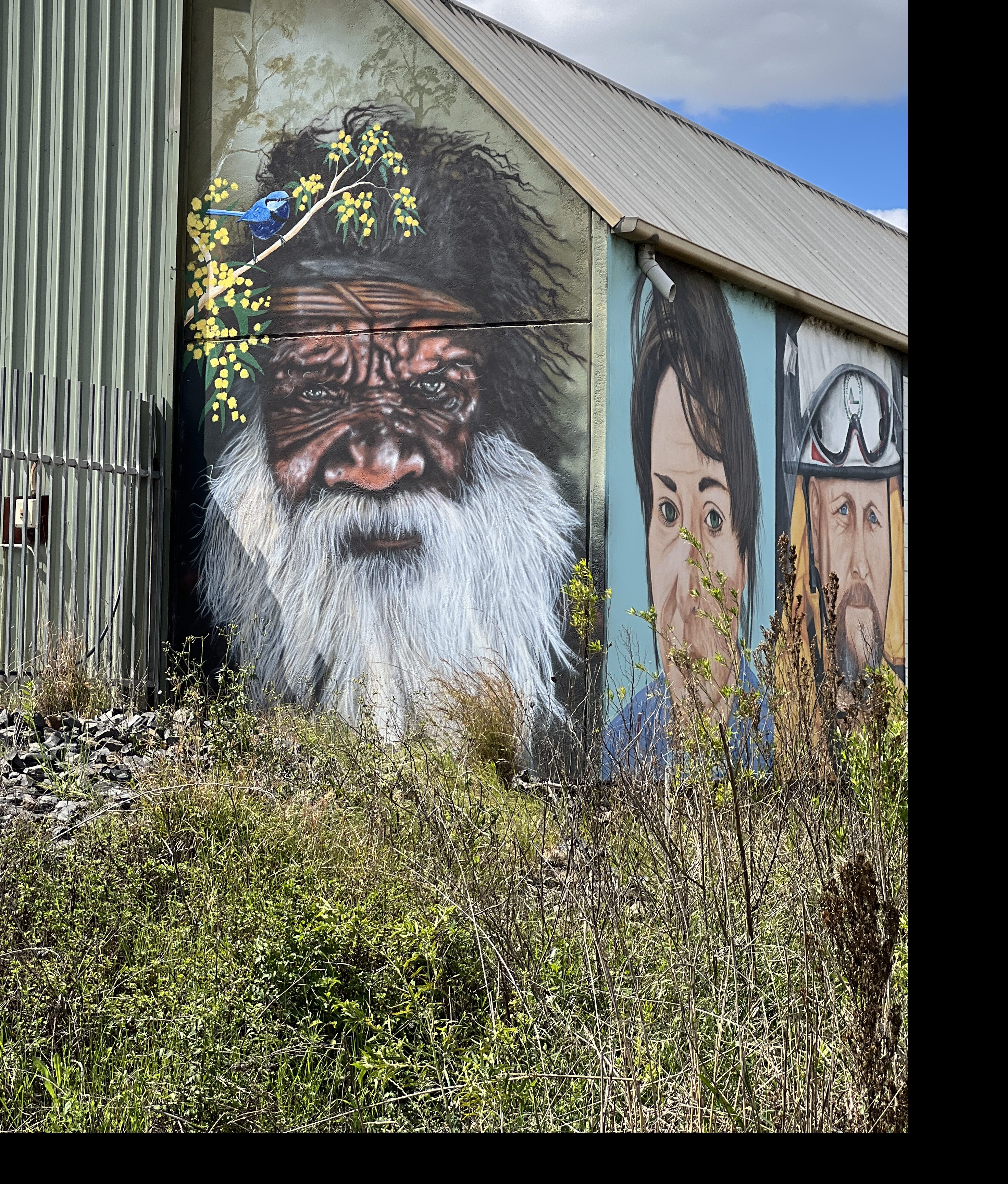 We have chosen a somewhat different route south this time, rather than going via Warwick to Goondiwindi we have headed out past Toowoomba on the Gore Highway. This takes us past Pittsworth and Millmerran on the way to Goondiwindi. Some great murals on the Moore transport terminals near Pittsworth, an elderly Indigenous mural the standout!