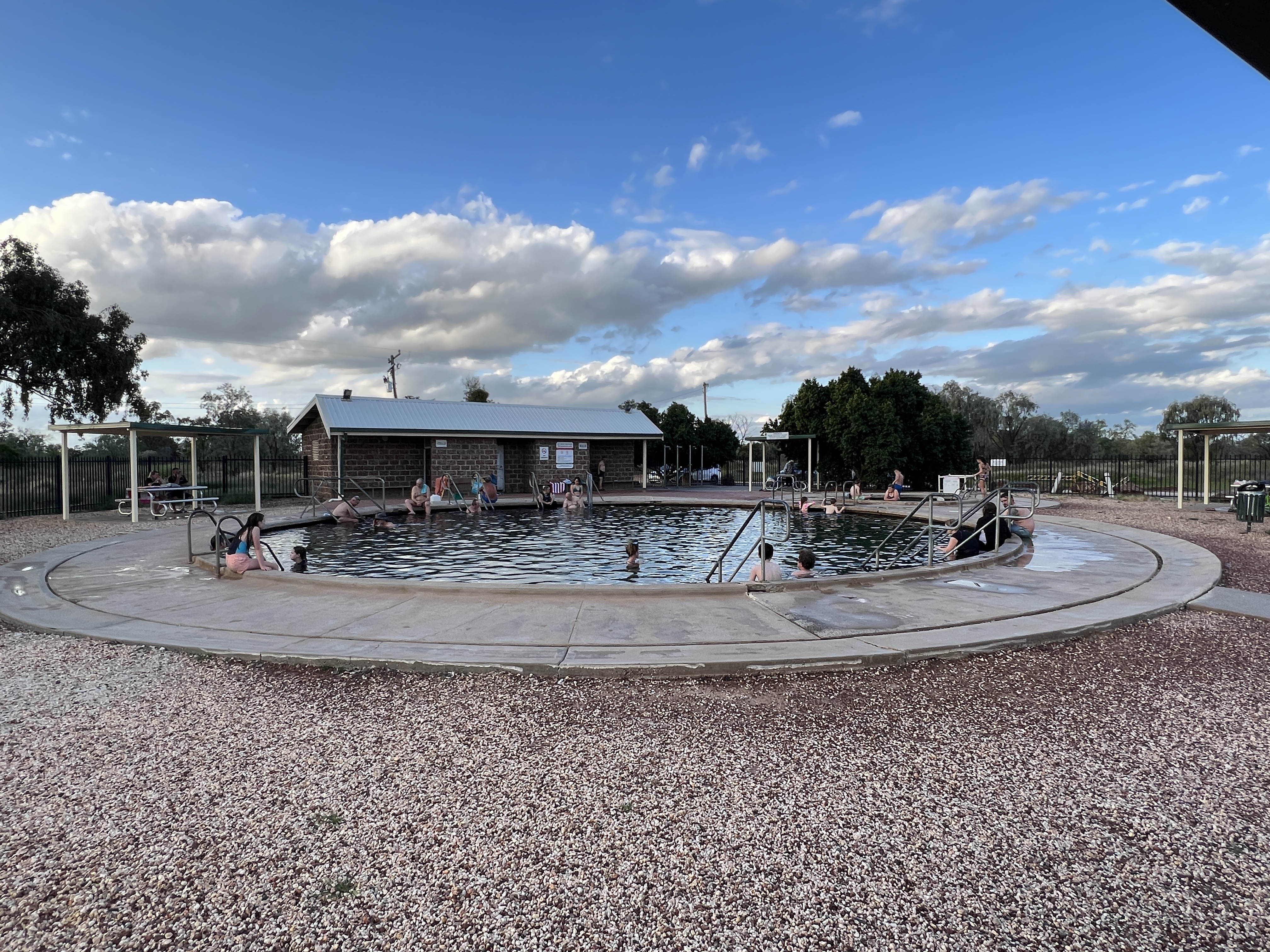 Allthego was tempted by the Artesian water baths and had a couple of dips in the 40’ pool, interspersed with a cold shower. Very therapeutic it is claimed and did loosen the limbs for a while. The pool is open 24/7. It was tempting to go back in the dark to have a look up at the night sky through the steam coming off the water. But the weather has not been favourable for star gazing, cloudy with scattered showers.