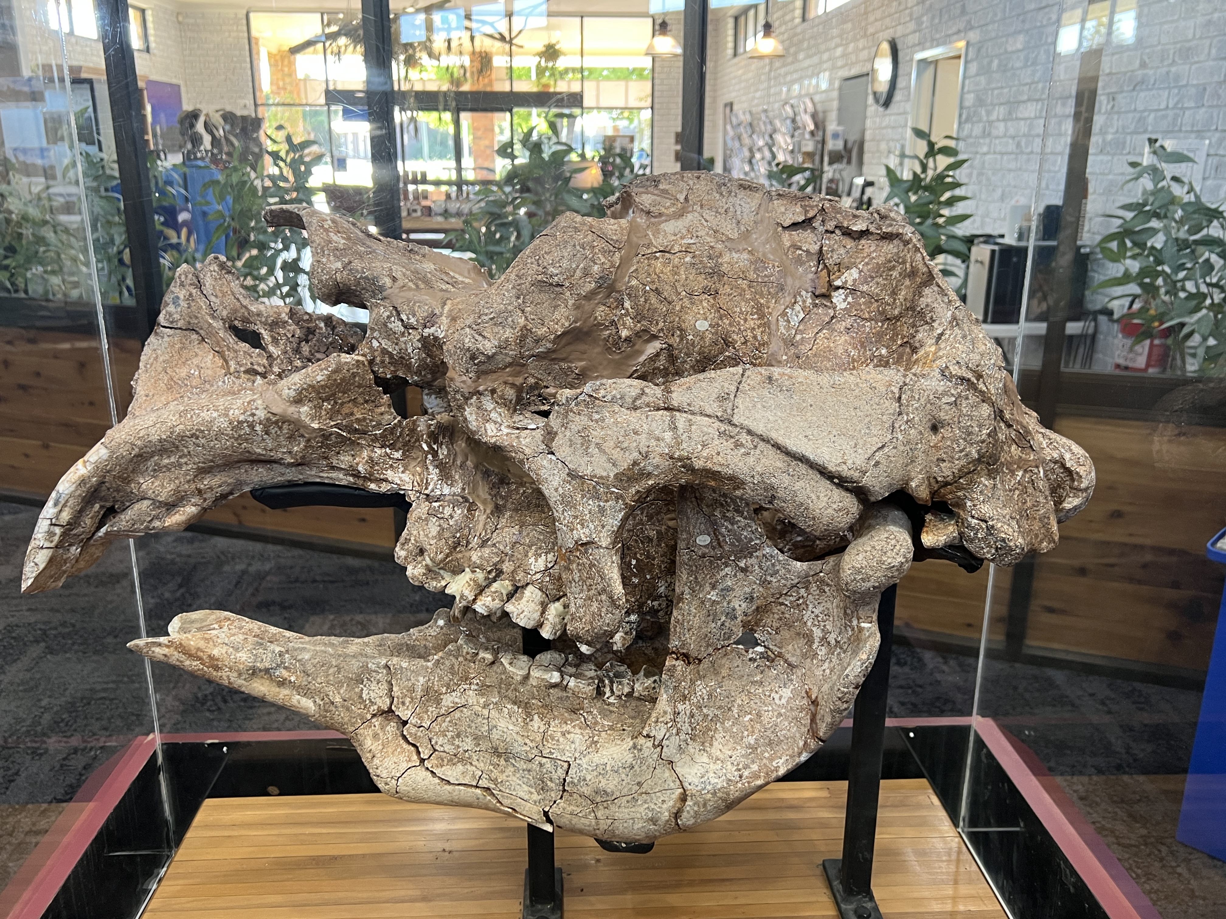 Back in town the Information Centre is a must see. They have the bones, including the skull, of a local Diprotodon. Very impressive display and information boards. Homealone has a stuffed Diprotodon back home, we got it out at Eromanga in western Queensland. Hers is much smaller than this Coonabarabran one and is only a bit bigger than a rabbit, we use it as a doorstop.