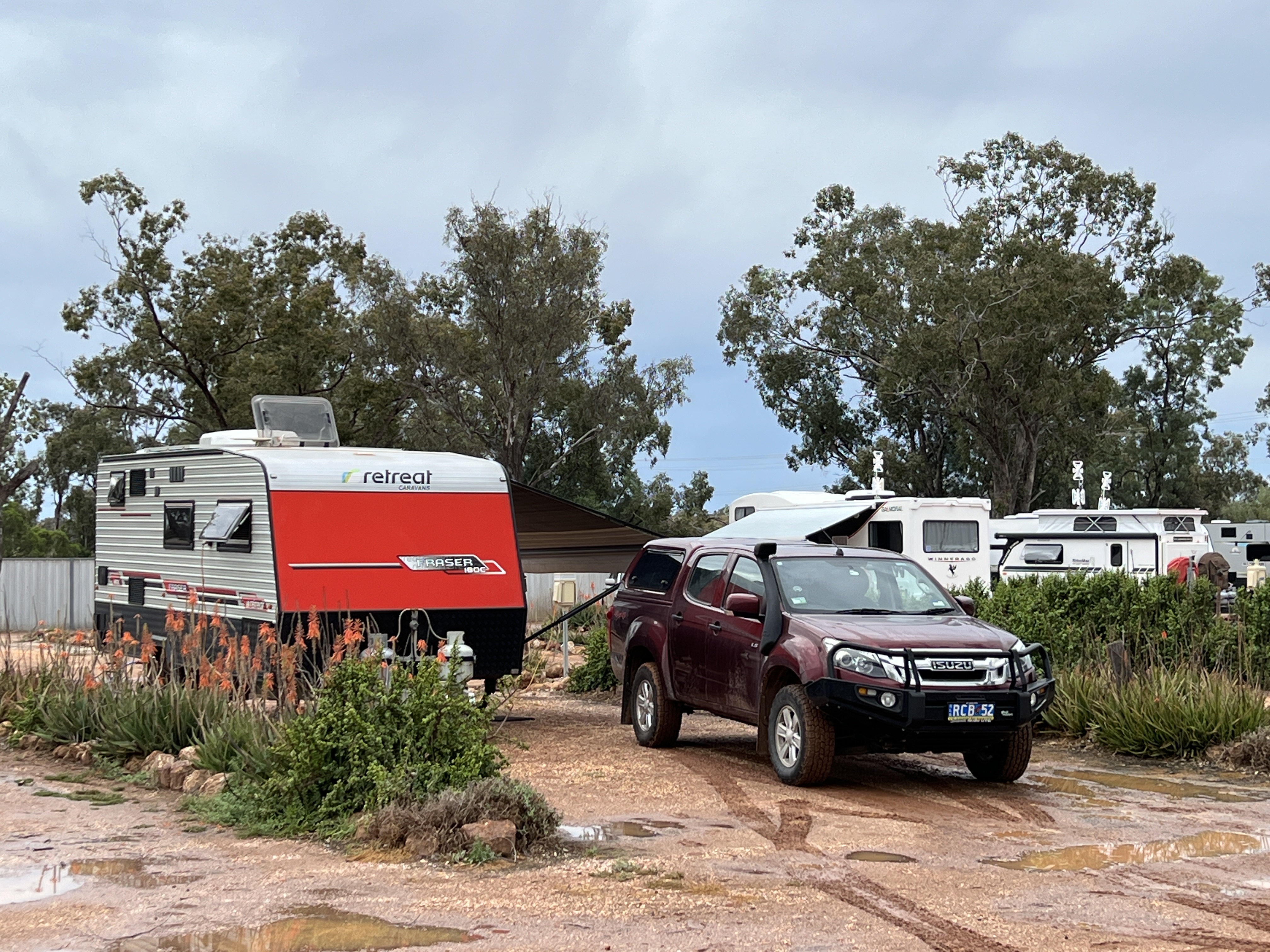 Arrived at the camp for a late lunch after setting up. Put our feet up for the afternoon. Rain came down in buckets for about an hour at around 4pm, caravan park with great pools of water. We are on slightly higher ground so spared the puddles and mud.