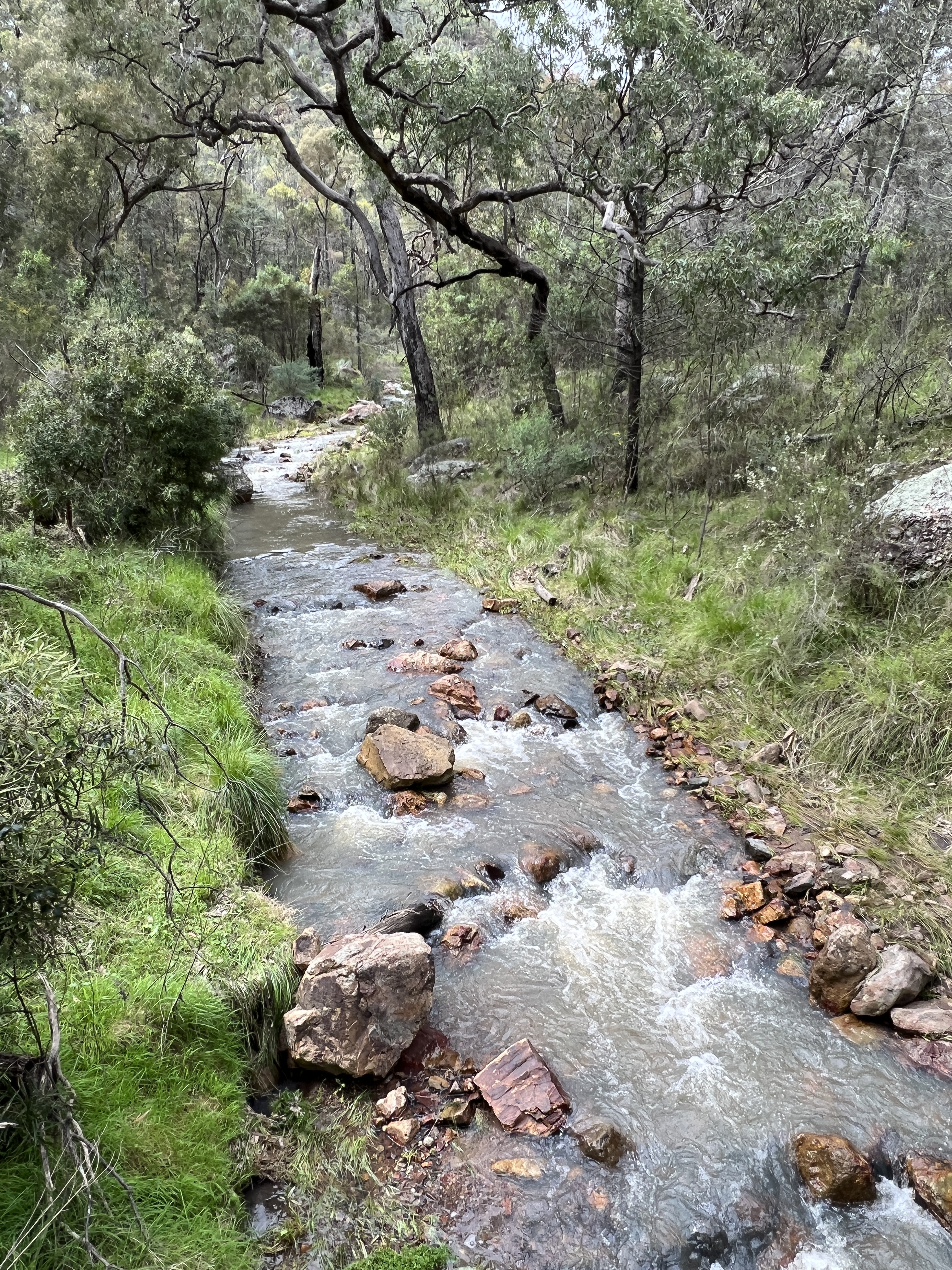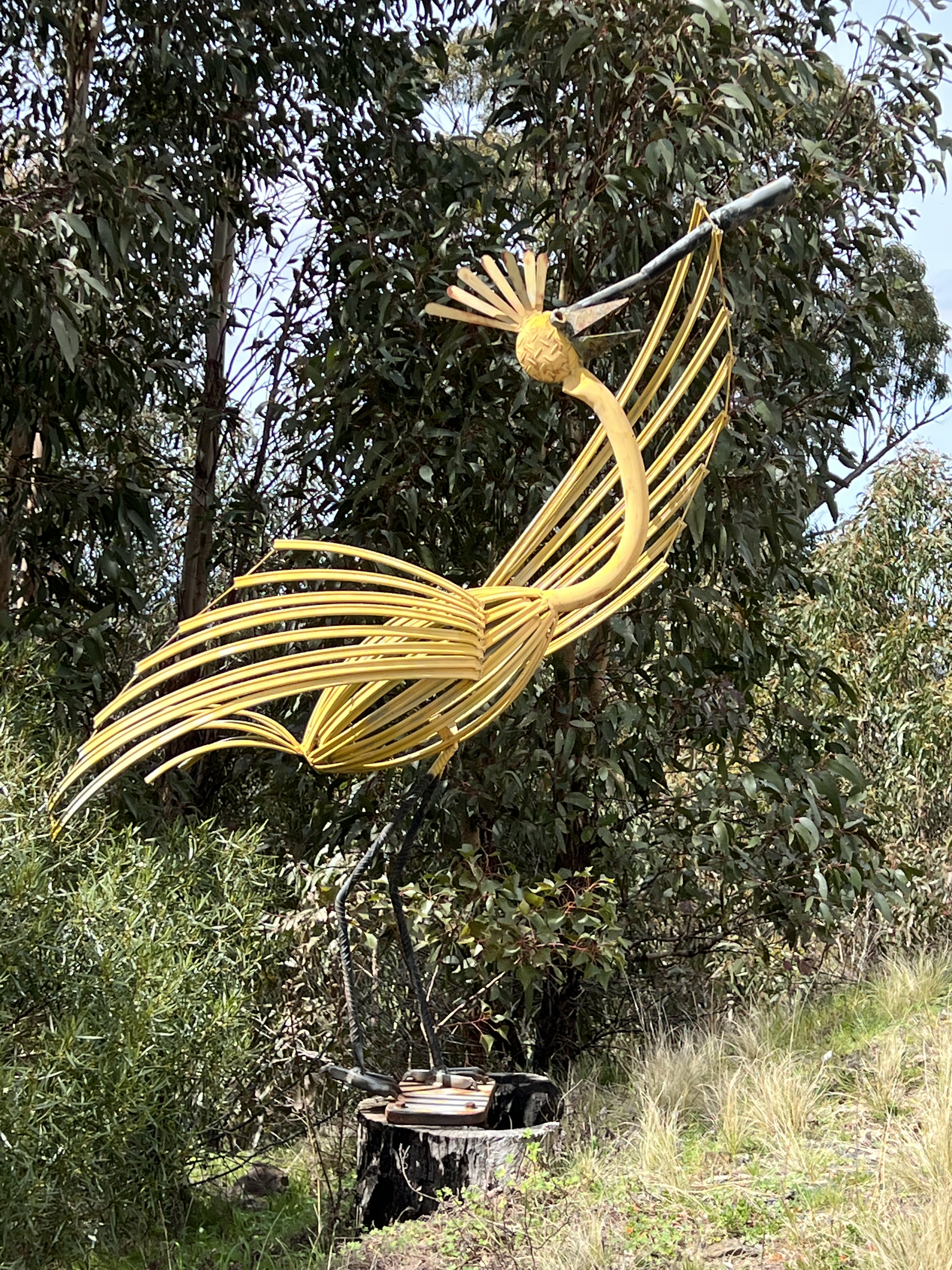 So we need to do the Sculptures in the Scrub walk sooner than later, 3.6km loop return. The walk is in two parts, the first takes us along the ridge line looking down into Dandry Gorge and the second is a stroll through the gorge beside the creek before ascending back to where we started.