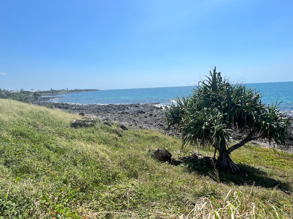 Have had three nights at Clairview, succumbing to the van’s air conditioning at night to get a good sleep. Rather hot and humid here beside the sea, even with the sea breeze. Not a lot to do either, besides sitting and looking out through the trees and coconut palms watching the tide come in and out across the sand banks and also warding off the midges as the sun sets.