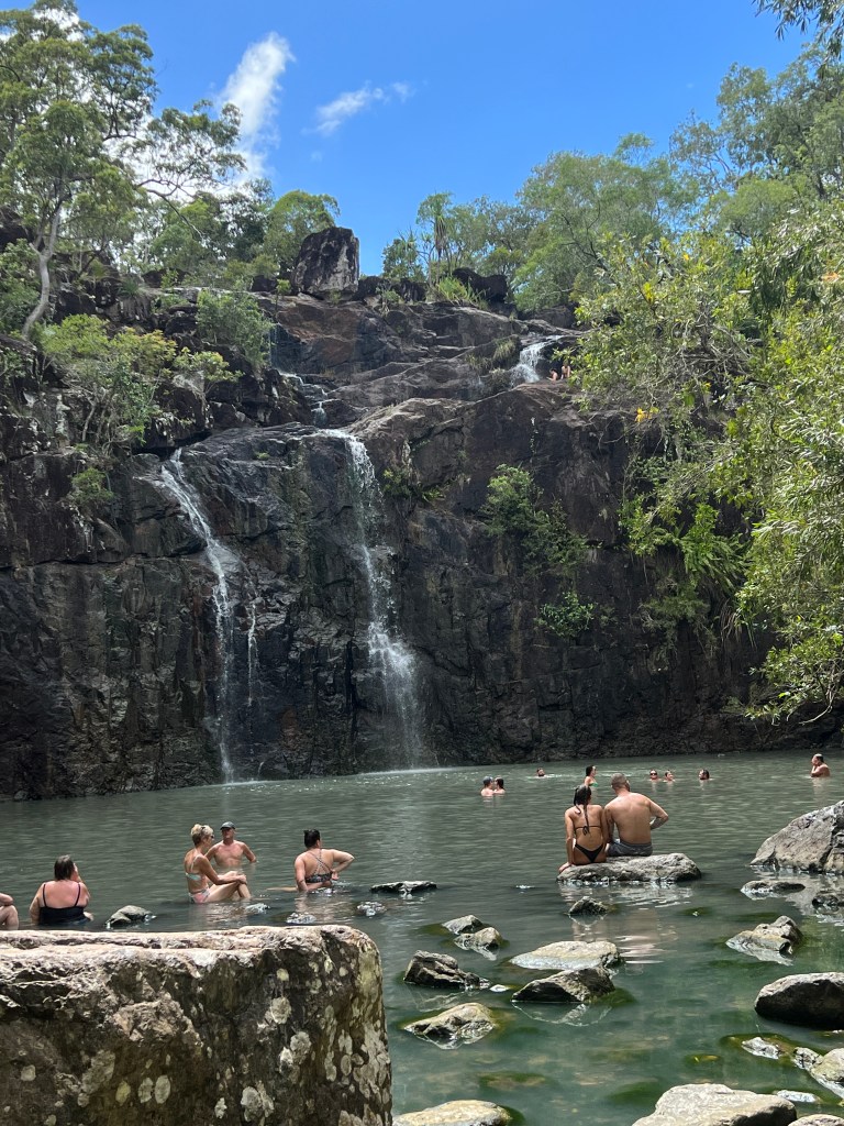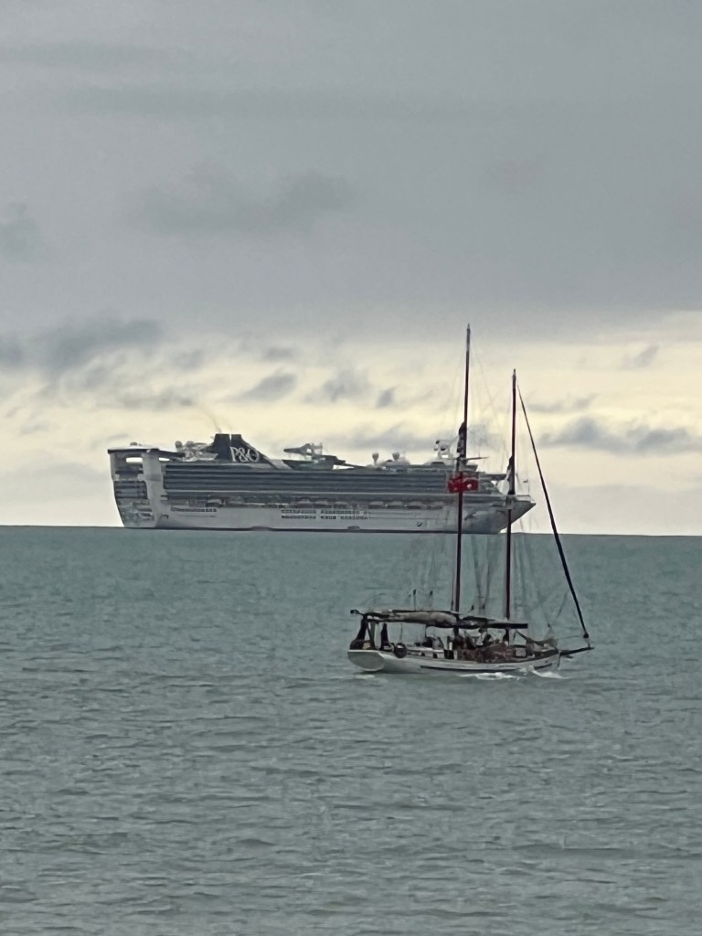 Cruise ships are well and truly back, three were in port on different days, emptying their passengers into the streets and excursions to the reef. Pacific Encounter, the ship we took to Melbourne for the 2022 cup, among them. It is now adorned with a big water slide and walkway that overhangs the side. Not into ships with water slides!