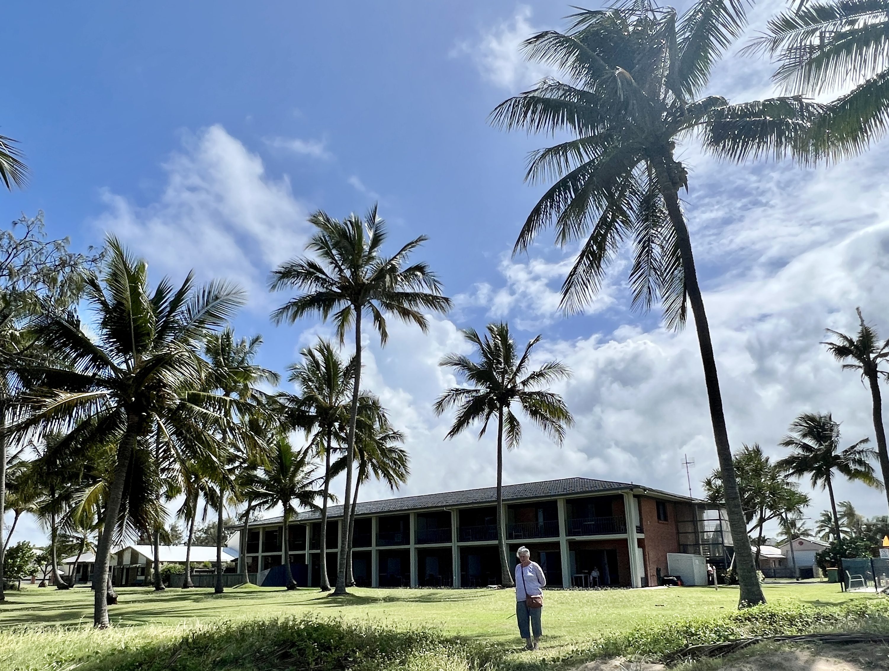 After leaving Airlie Beach we made good time down to Mackay and headed out to the coal loaders at Hay Point for a gander at all the ships lined up out to sea. Unfortunately, the lookout was closed for some reason and the view from the breakwater was not good, either out to sea or of the port facilities. We continued down the coast road to Sarina Beach. This is another of those places we stayed at on that trip 43 years ago before kids. The motel still there, looking much the same. The view is certainly the same.