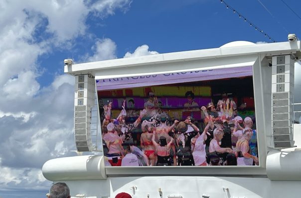 There is also a Captains Circle Party to hear a chat from the Captain. It was at this party that we were told who is on board with the most cruise days all up. The top three. Slobro can’t recall the numbers exactly but here they are in round numbers. First, 1800 sea days and 174 cruises all up. Second, 1700 sea days and 142 cruises all up. Third, 1400 sea days and 121 cruises. Something like 5-6 years cruising, apparently more or less constantly! Slobro, 17 days and counting!