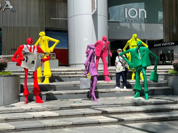 After getting ashore at about 10.30 am it was into the subway for a ride up to Orchard Rd, shopping heart of the city. At least the up market end. Very busy place among the modern buildings and traffic. Some great street art along the footpaths and building forecourts.