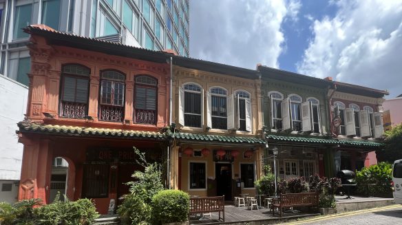 A little further along it was a surprise to glance up a side street and see some of the old shophouses leading up to Emerald Hill. Very colourful, mostly bars and the like now.