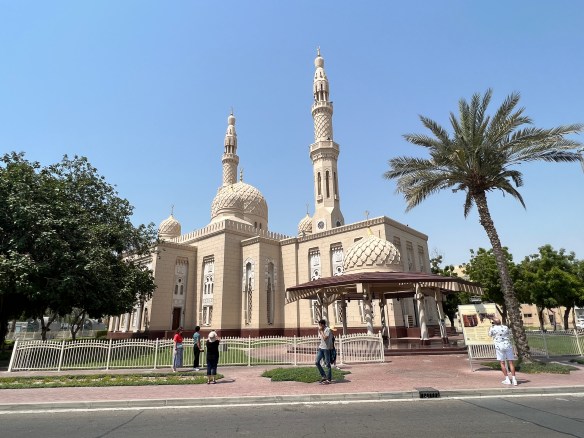 The ones on the Jumeirah mosque have a circle shape on top. This means the mosque is a Sunni mosque, common in Saudi Arabia and these parts. If there is a sickle shape on top it is a Shia mosque, common on the other side of the Persian Gulf in Iraq and Iran, although there are Sunnis there as well. So that might help readers in a trivia quiz! I won’t dwell on the difference between these two, Wikipedia will help the curious.