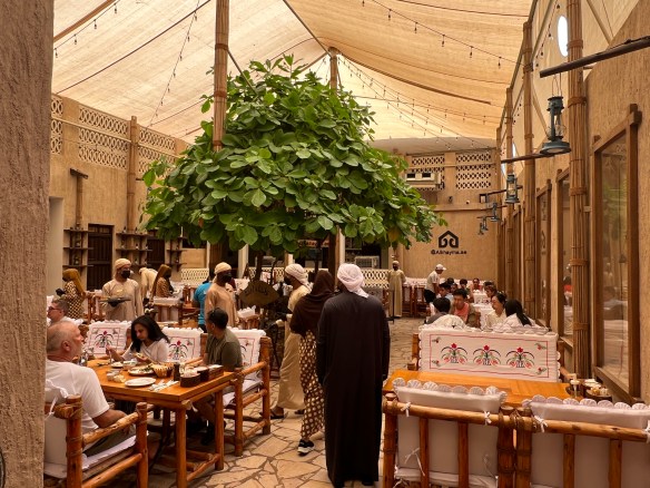 Back in 2007 we had spent a few days here in Dubai and the old historical district and sites were somewhat familiar to us. We had stayed in a nearby hotel. Allthego had done some research on eating establishments, looking for a place offering a traditional menu and ambience. The Al Khayma Heritage Restaurant came up with good reviews. The trick was to find it, we had the address and lo and behold the Red Bus went right past it. But we had missed the stop and had to walk back from the next stop. Again luck was on our side as we walked right past a post office and Allthego was able to get his post cards away, including one from Colombo!