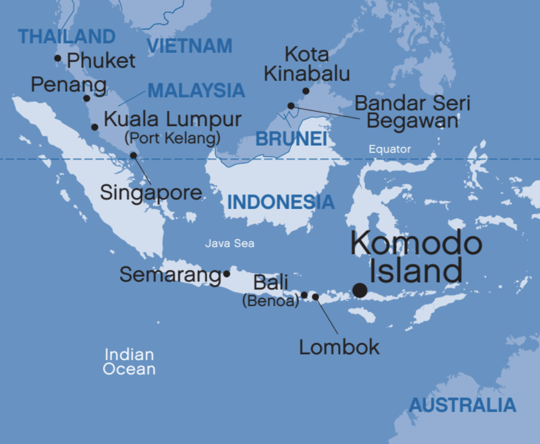 The Coral Princess is leaving Brisbane and will be taking us up the Queensland coast, through the Torres Strait to Komodo Island, where those big lizzards live, in that string of islands running down from Bali towards PNG. Then, Singapore and across the Indian Ocean to Dubai via Colombo in Sri Lanka.