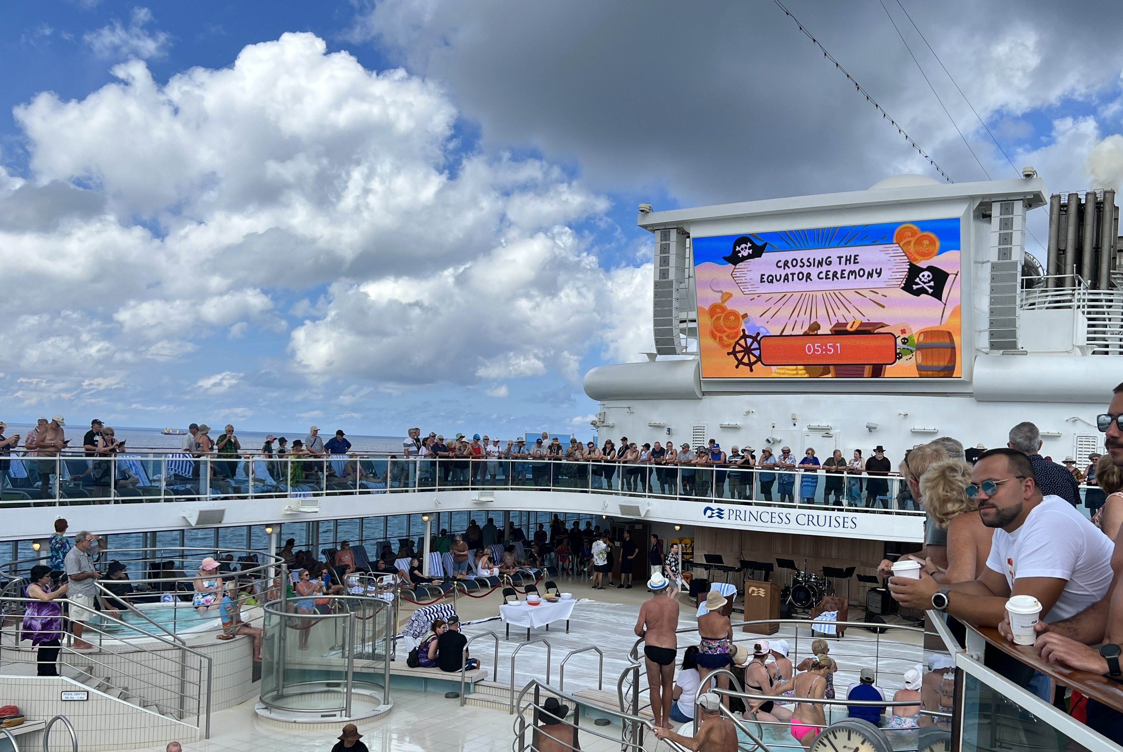 On the way up to Singapore the ship crosses the equator on a line that more or less cuts Sumatra in half, we are out to sea with no land in sight. It is about 1pm when this happens and it is the signal for an old custom to commence.