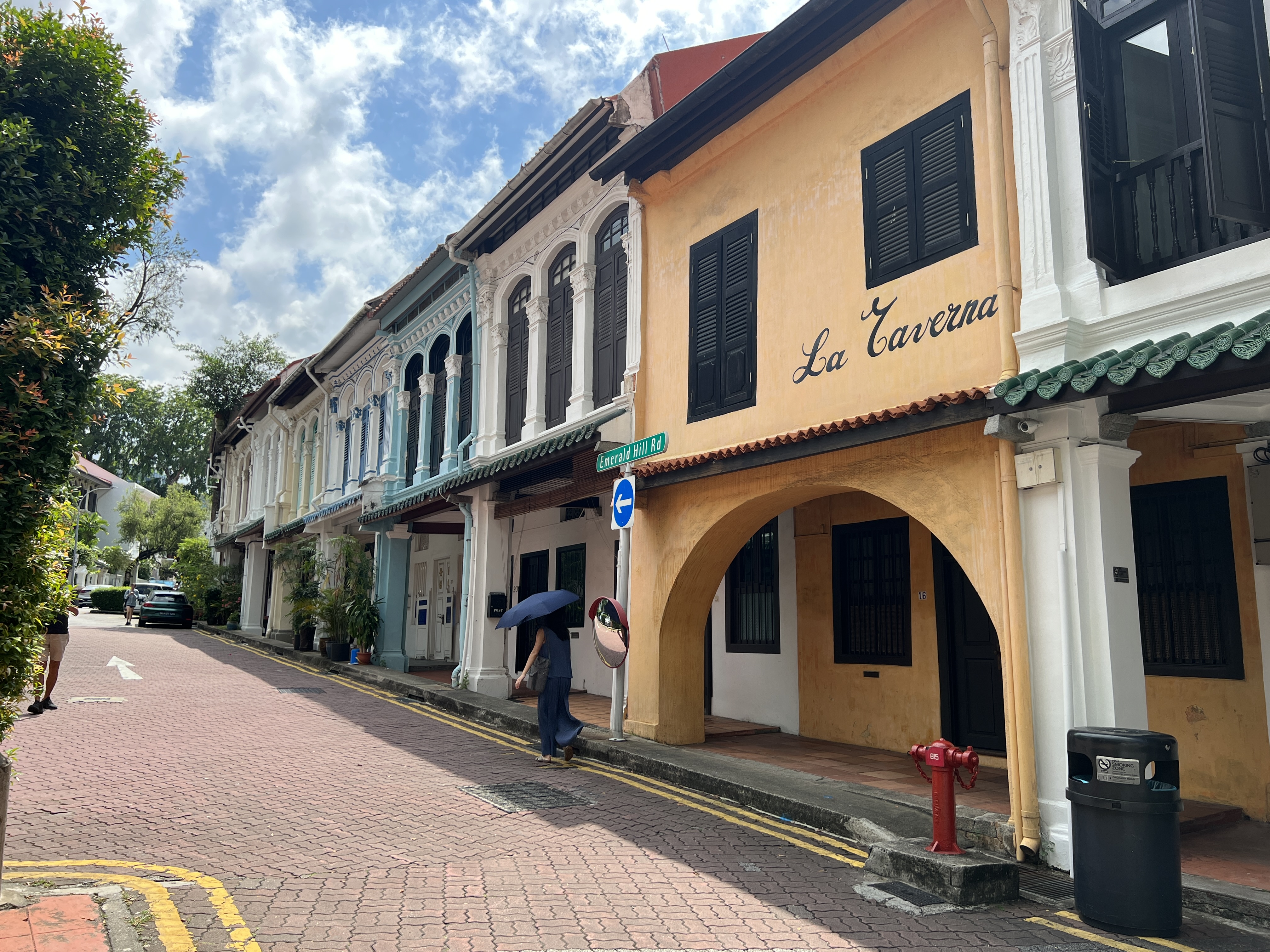 A little further along it was a surprise to glance up a side street and see some of the old shophouses leading up to Emerald Hill. Very colourful, mostly bars and the like now.