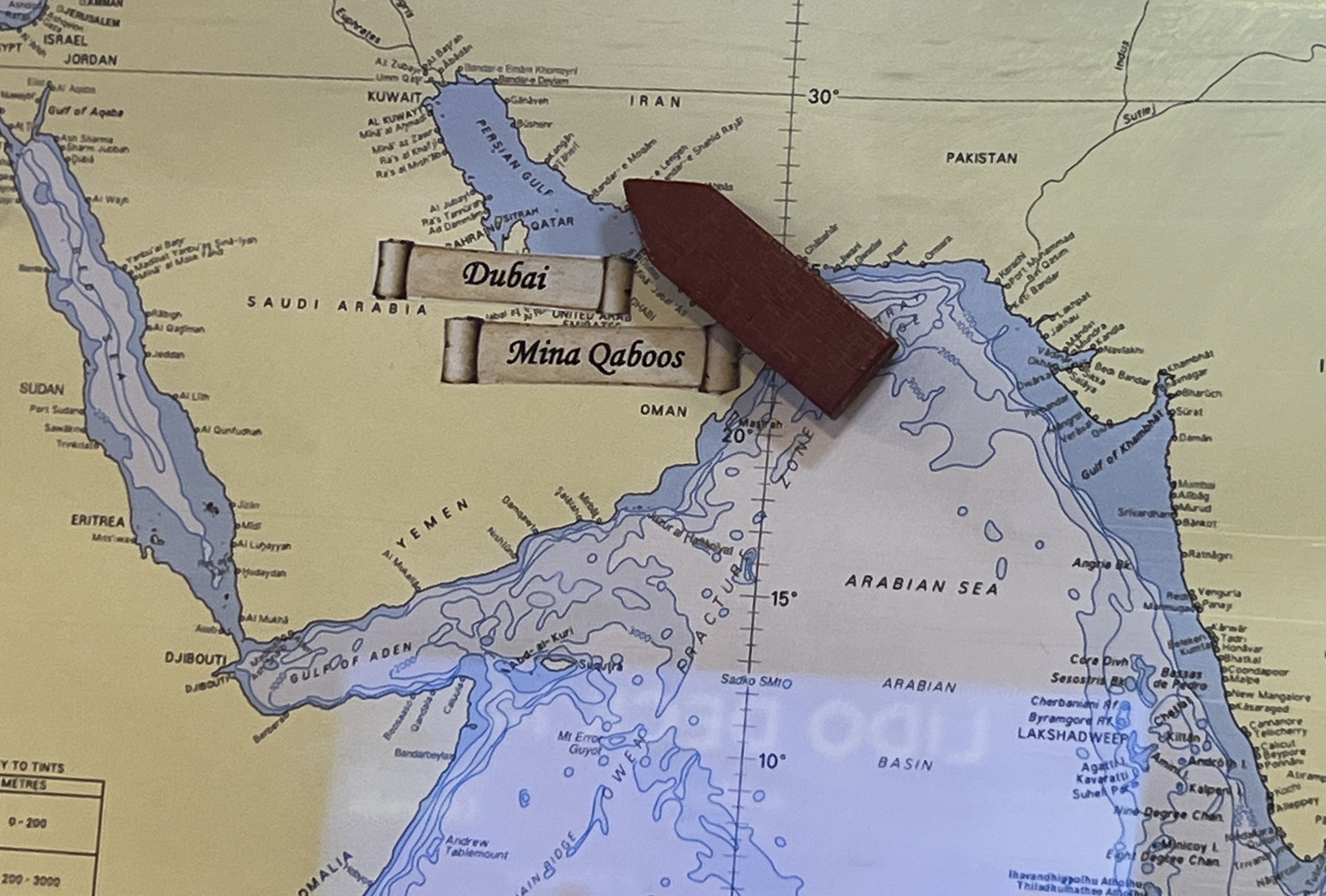 Unfortunately, our late departure from Colombo and continuing engine issues have slowed our passage northwest across the Arabian Sea. We are currently in the Gulf of Oman making for the Straits of Hormuz and the Persian Gulf. A stop had been planned for Muscat in Oman, but this has been abandoned. We will be arriving in Dubai tomorrow, 25 June for an overnight stop, a little earlier than planned. So we will have had another four days at sea.