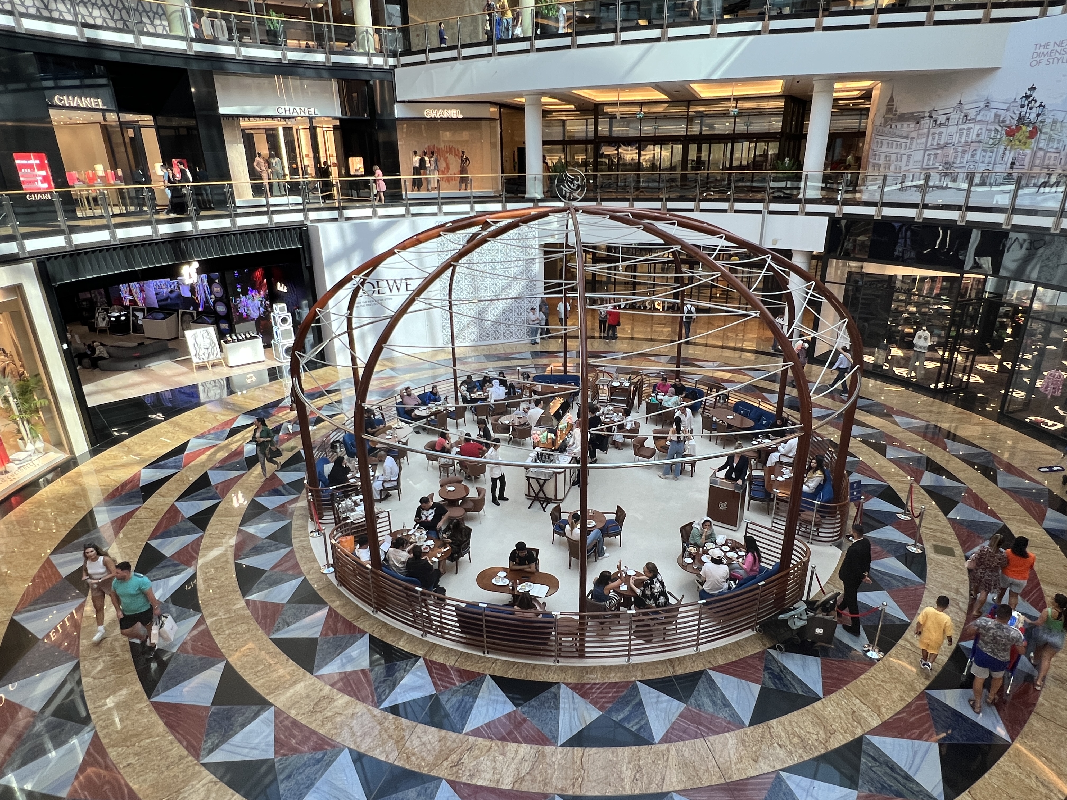 All sorts of people wandering around, traditional Emirati and Muslim outfits to ripped jeans and bare midriffs. Quite a contrast. It is a reflection of Dubai’s libertarian turning of the cheek to breaches of Muslim practice, except when it comes to the mosques.