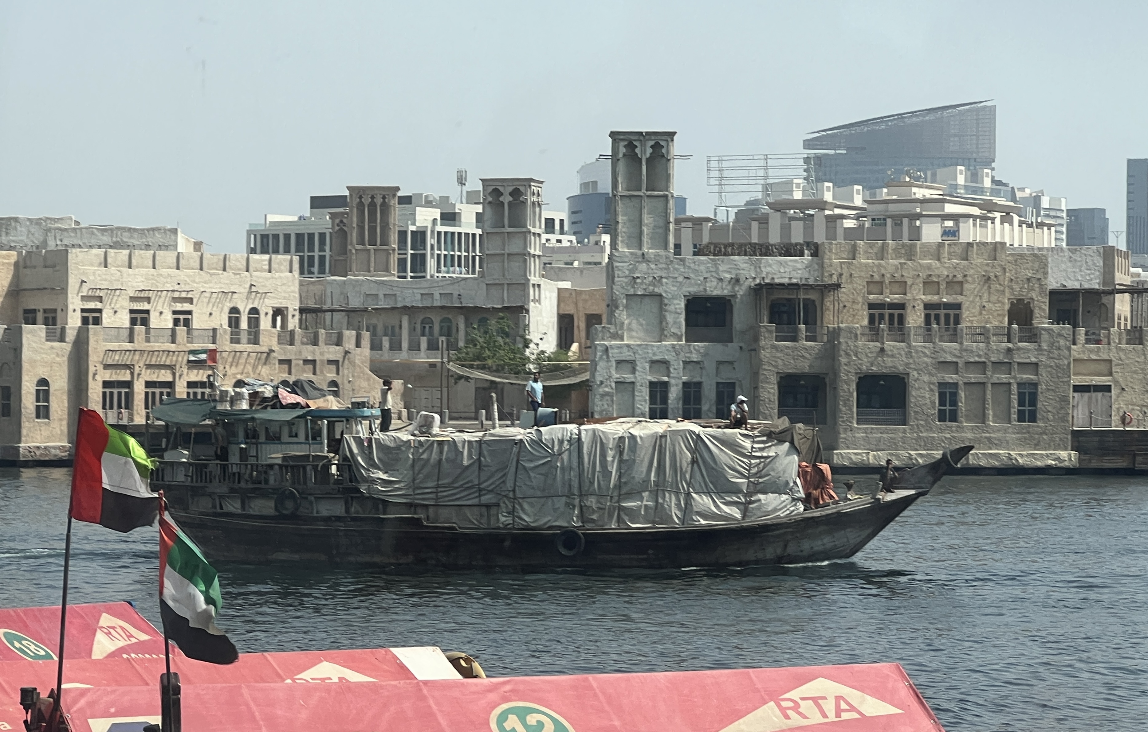 This experience highlighted the old problem with Red Buses. We got off the bus and had to wait half an hour for the cruise to start. Shade was at a premium. Then after the cruise we had to wait another half hour for the next Red Bus to come along. So we did an hour there. But the cruise was pleasant catching all the life along the river bank. Dhows being loaded and unloaded, people rushing around and going back and forth across the Creek in small ferries.