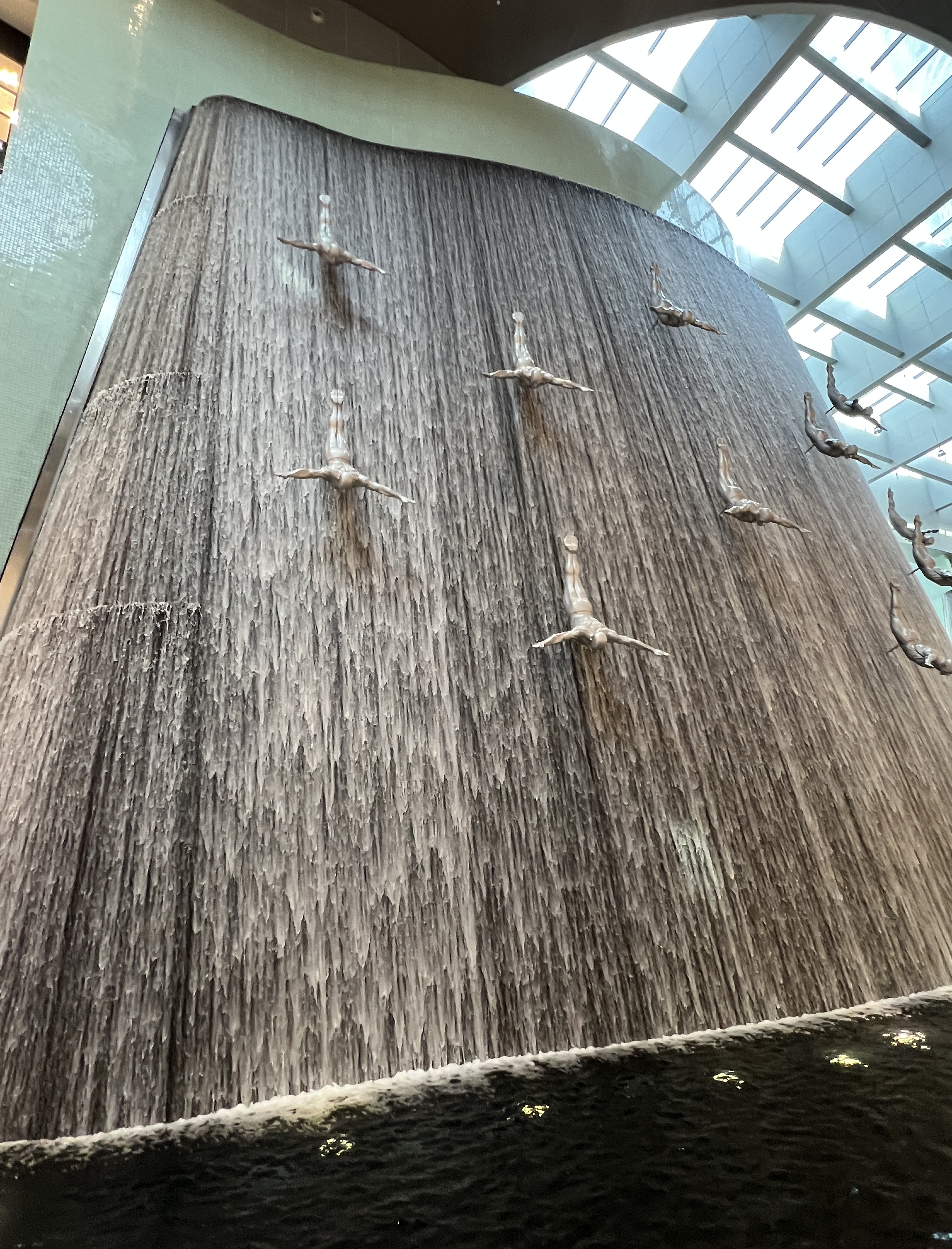 Burj (Tower) Khalifa is set amidst the sprawling Dubai Mall. Most things in Dubai are big. Dubai Mall is the largest shopping mall in the world, 1300 plus outlets, Olympic size ice rink, huge aquarium, 3 story waterfall. It covers 4 floors with 12 million square feet. Simply enormous.