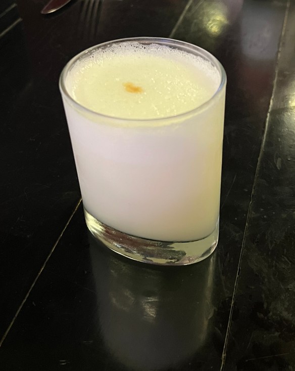 We have acquired a small bottle of Pisco to inflict on visitors back home. The Pisco Sour is a mix of Pisco, lemon juice, egg white, sugar syrup, ice and bitters. Refreshing!