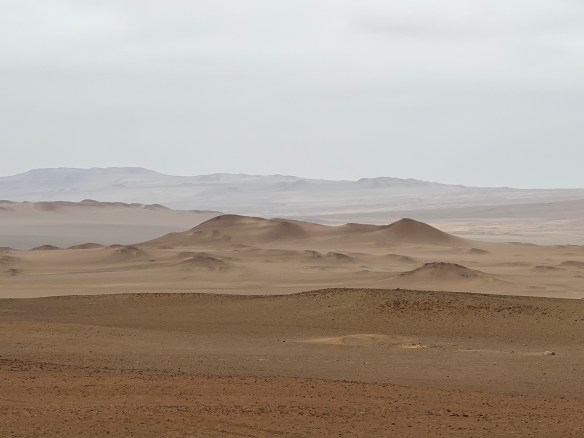 We have chosen to get out of ‘suburbia’ and visit the Paracas National Park for the morning. This area is the northern extremity of the Atacama Desert, which is predominantly in coastal Chile. It is the driest place on earth and receives little rain and is devoid of vegetation.