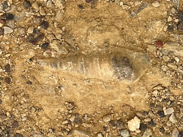 In one particular area there is an exposed rock surface containing hundreds of fossils of conical sea shells, attesting to its former sea bed location.