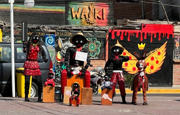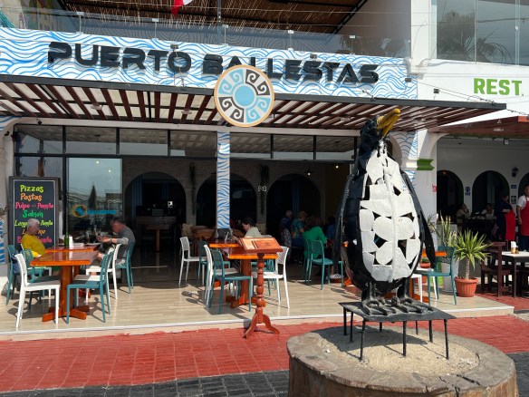 Lunch was ‘fish n chips’ Paracas style, flaky pieces of fish deep fried with yucca chips and some dips. And a Pisco cocktail (not Sour). The yucca chips were a bit marginal, fibrous and pasty, I think they are ‘cassava’ by the more local name ‘yucca’. A very nice ambience though among the locals in one of the restaurants along the waterfront.