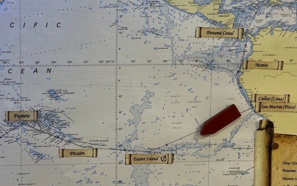 We are now finally turning west and heading out across the Pacific Ocean to Easter Island and will be home around 22 September.