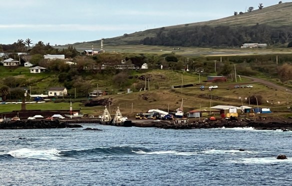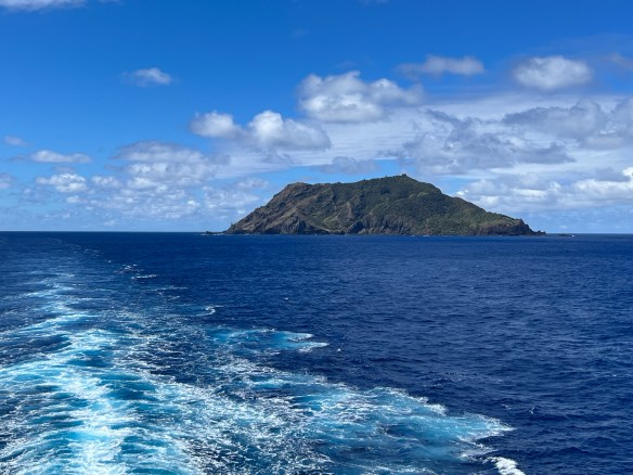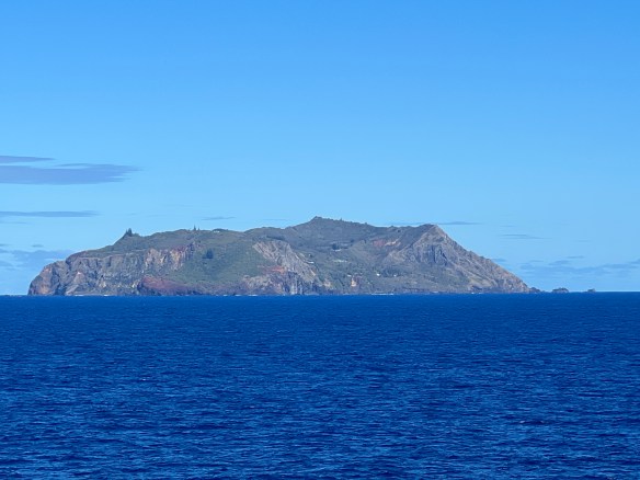 We have on board a fellow cruiser who is related to one of the residents. The ship arranged a call to the island so the two could speak, some of the conversation was broadcast over the ship’s PA system. Interesting chat, particularly the strange variant of English spoken which is a blend of Polynesian and 18th century English.