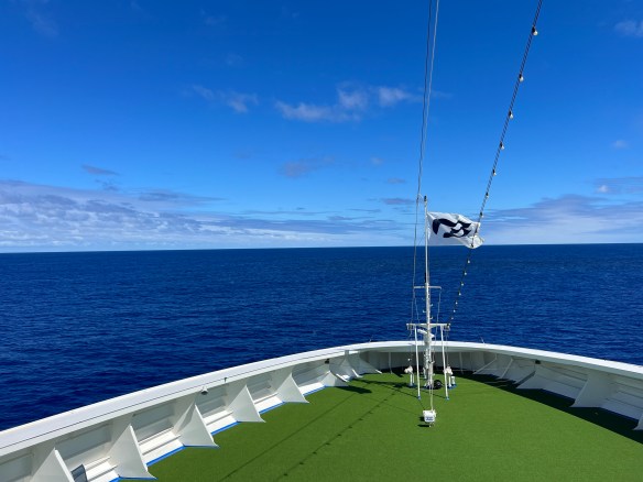 On the sail across the ‘ditch’ from New Zealand we experienced the heaviest seas of the whole cruise. Some 4 to 5 metre swells and strong winds, the ship was getting along at 21 knots for most of the time. A bit of harmless rocking and rolling with the occasional ‘bump’ as the ship nosed into a wave.