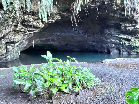 The Grotto is set among some attractive gardens and waterfalls, displaying native vegetation. We have stops further along at the Arahoho blowhole. The sea swell though is coming from the wrong angle today and so the blowhole is a bit quiet.