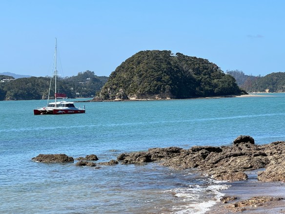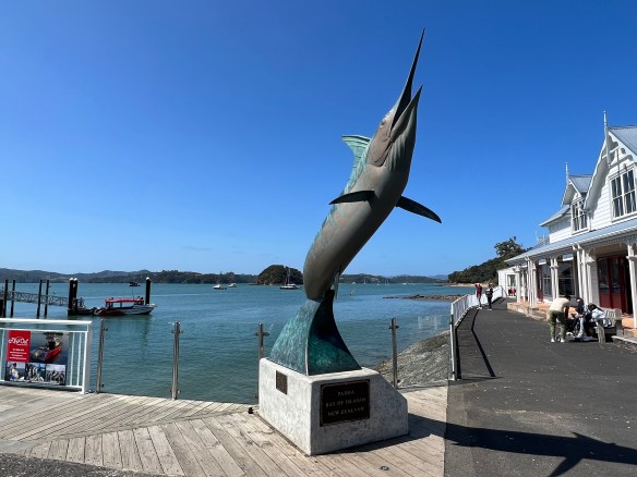 The Bay of Islands is a wonderful place, blue sea dotted with small islands and sandy beaches. Made famous in the 1920s for Marlin fishing by Zane Gray! For those who remember the old TV show ‘Pic a Box’ I think the hosts Bob and Dolly Dyer also fished here? We were also here a few years ago on a cruise with Homealone’s siblings and partners, but we didn’t go Marlin fishing.