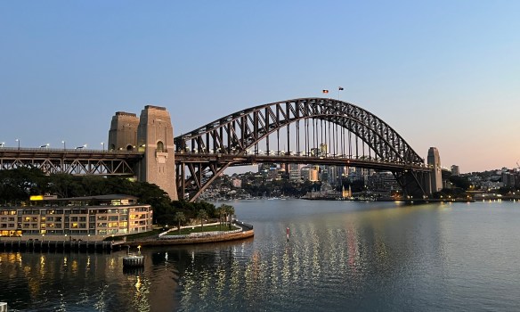We had planned to rise early for the sail through the Sydney Harbour Heads, timed for about 5 am. Slobro rose early around 4 am, but rolled over and didn’t wake us till after 5.30. We were coming into Circular Quay, next to the Bridge and opposite the Opera House. Great spot but we had missed the sail in!