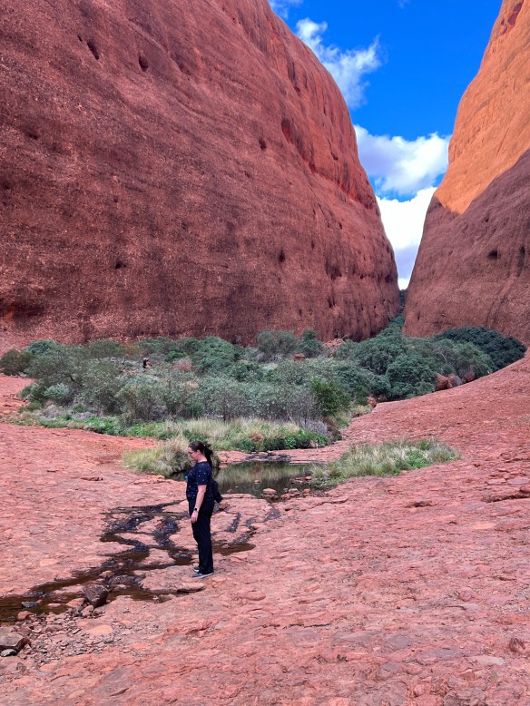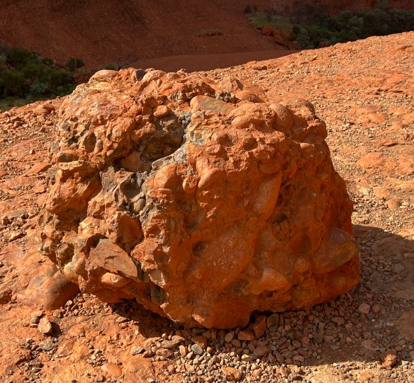 The Walpa Gorge walk starts here and runs between two of the domes for about 1.3km on a steadily rising up and down path to the end of the gorge. The track weaves over the same conglomerate rocks that comprise the domes.