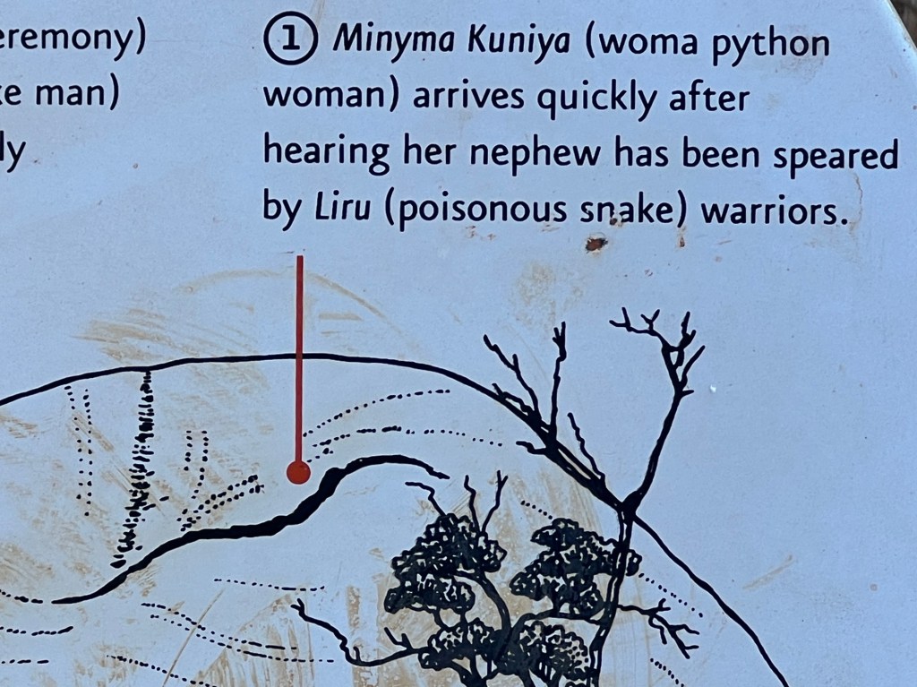 If one stares at Uluru long enough you can see all sorts of shapes emerging from its surface. The imagination can run wild here and you can clearly see things others can’t see. The First Nations people have clearly been quite adept at developing cultural/law ideas from landscape features.
