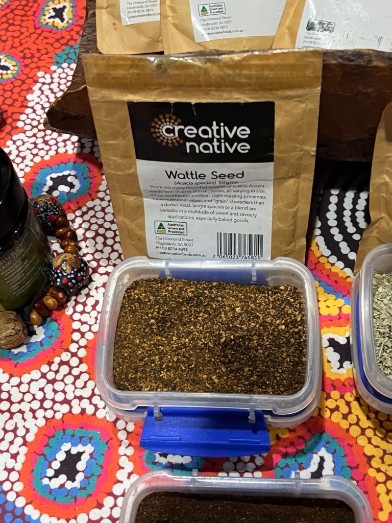 We managed to get back to the village to join the others at a Bush Tucker talk, short but sweet and a promo for products on sale in the local shop. Allthego got some tasty saltbush dukka, ground wattle seeds and some bush tomato chutney. This stuff might be good on a pizza.