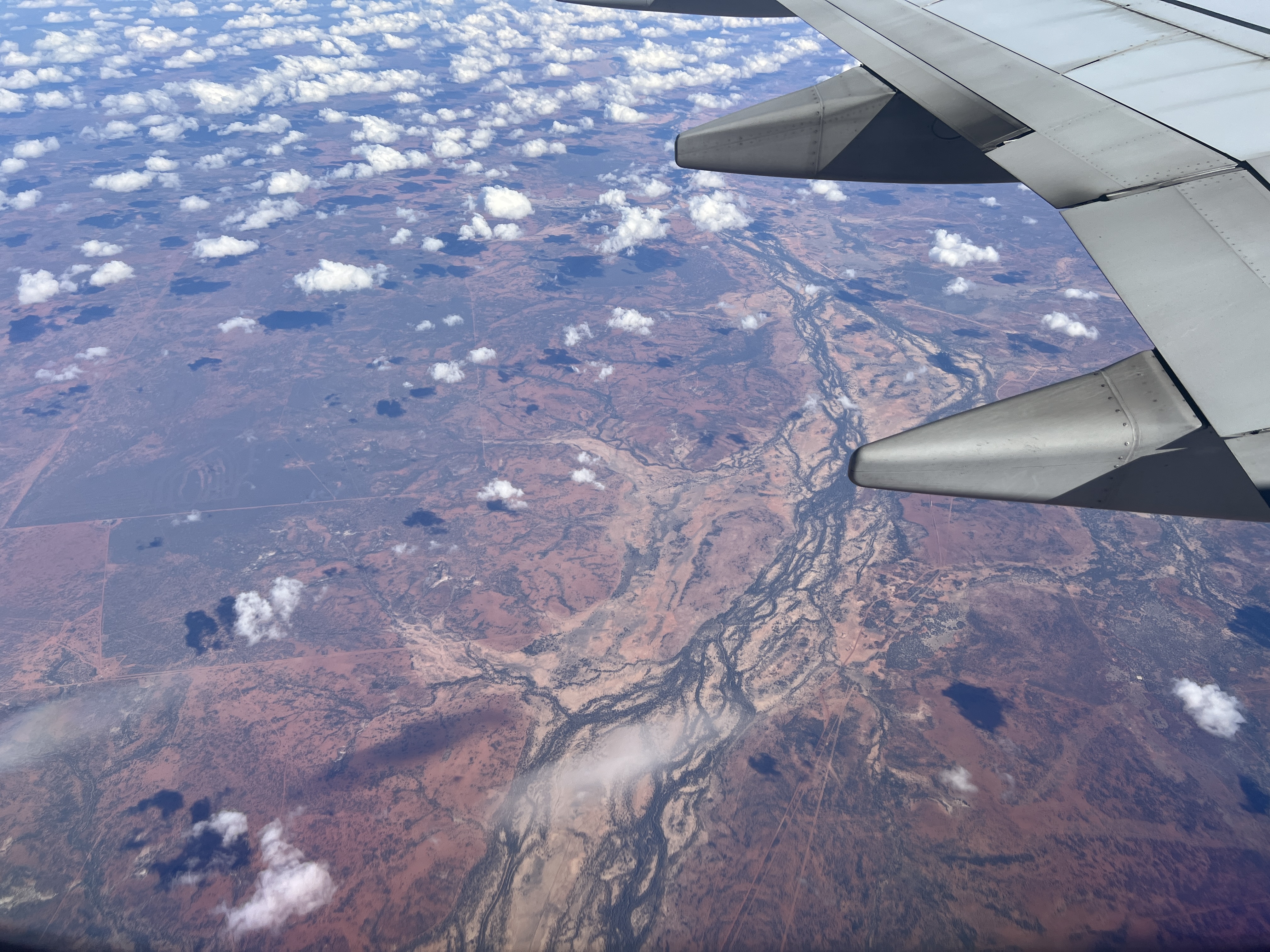 The flight out took a little over three hours, quite a smooth transit. Some clear views of the landscape below, including a great sighting of the Rock as we came into land at Ayres Rock Airport. A little odd it seems in that we now refer to the actual Rock as Uluru and not Ayres.