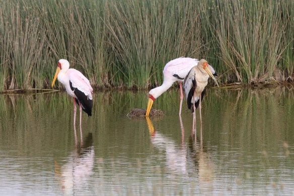 So, not long after we started, sure enough some White Rhinos put in an appearance for us. They are bigger than Black Rhinos and have a wider squarish jaw line rather than the more pointed one of the Black Rhino. We are told that the name ‘wide rhino’ has morphed into ‘white rhino’. Who knows but it is a good story.