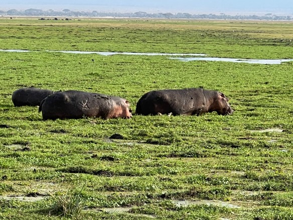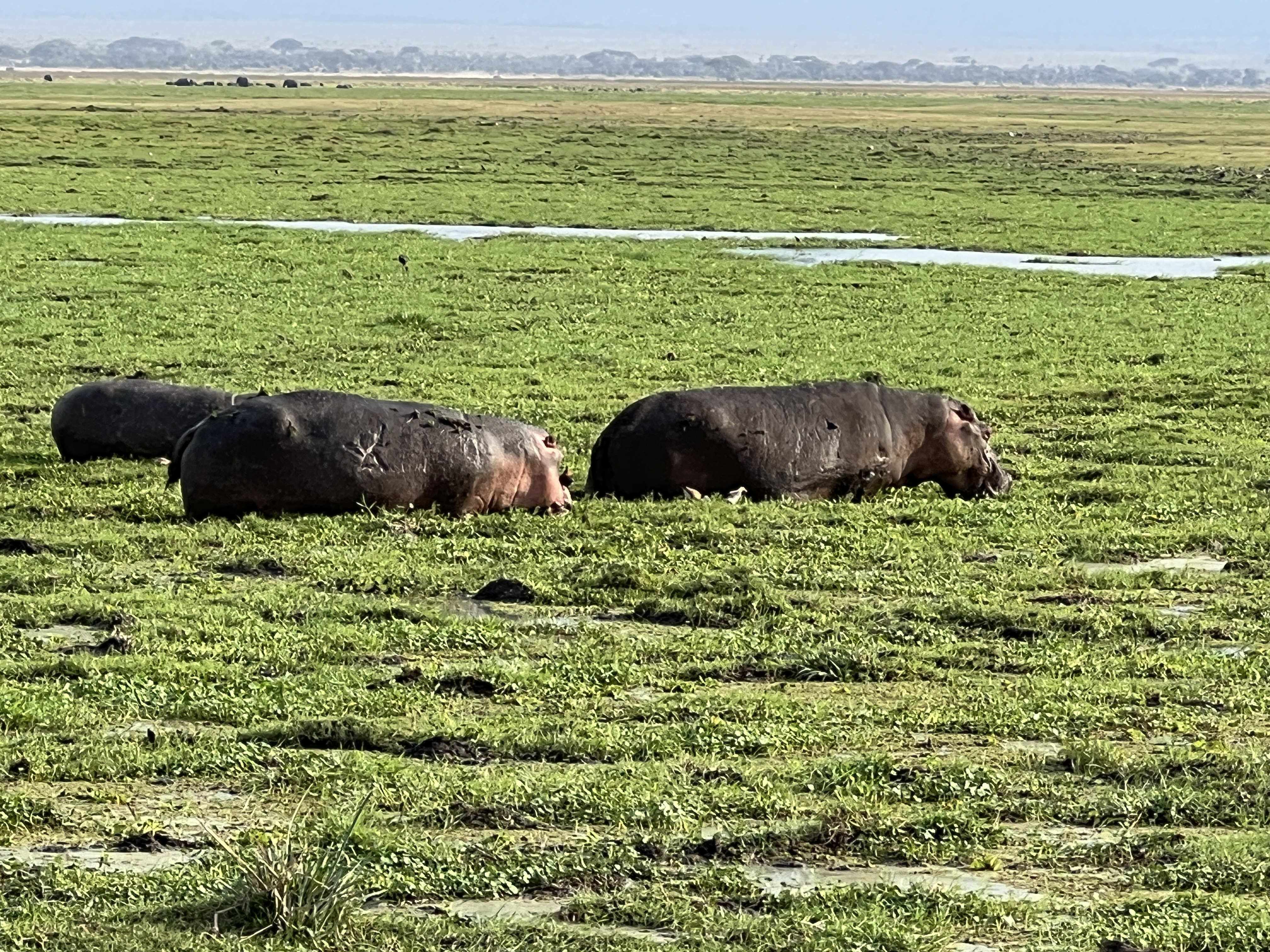 The other animals, I’ll call them the usual suspects, were in abundance; but no lions came our way. Hippos grazing were a standout.