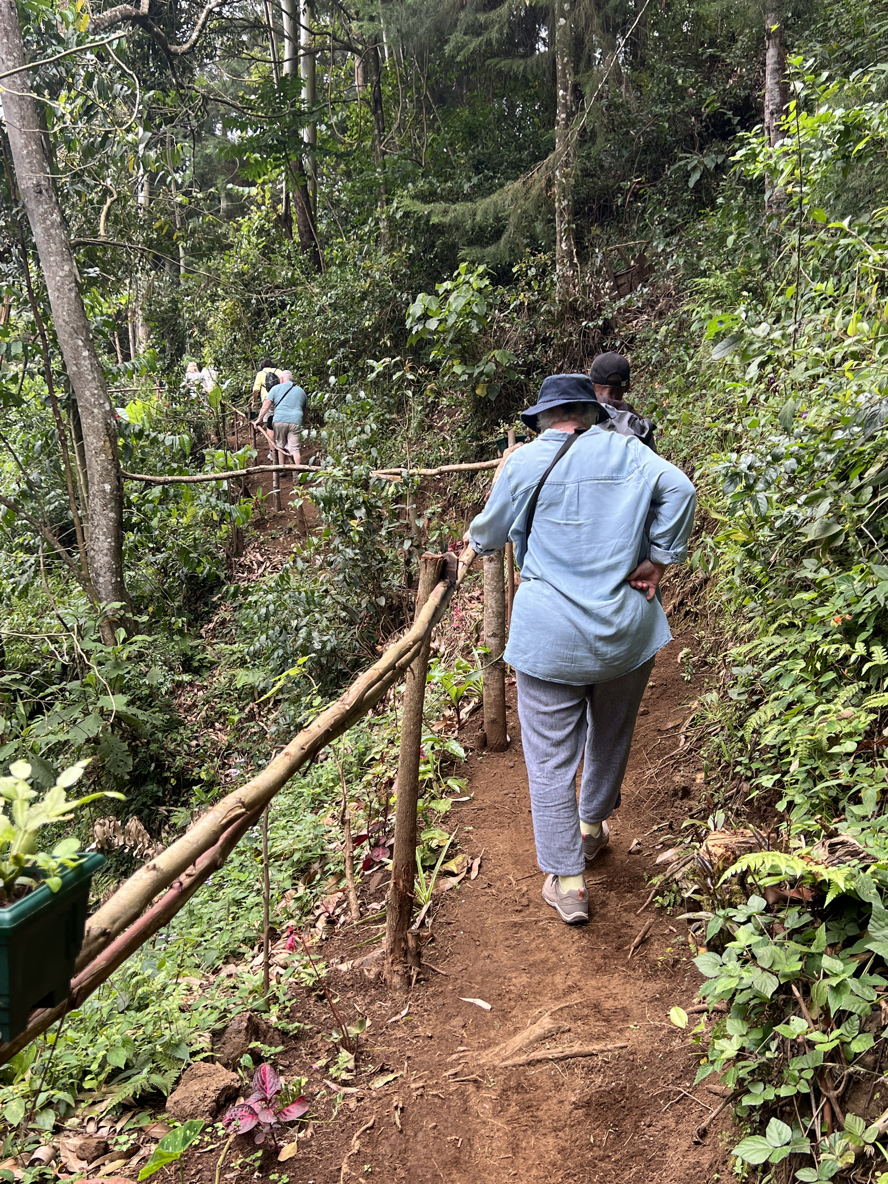 We had no dramas. Our party of 9 was split into two vehicles, travelling mostly in convoy. Along the way we stopped for a short walk to the Kilimanjaro Falls, pretty but not spectacular.