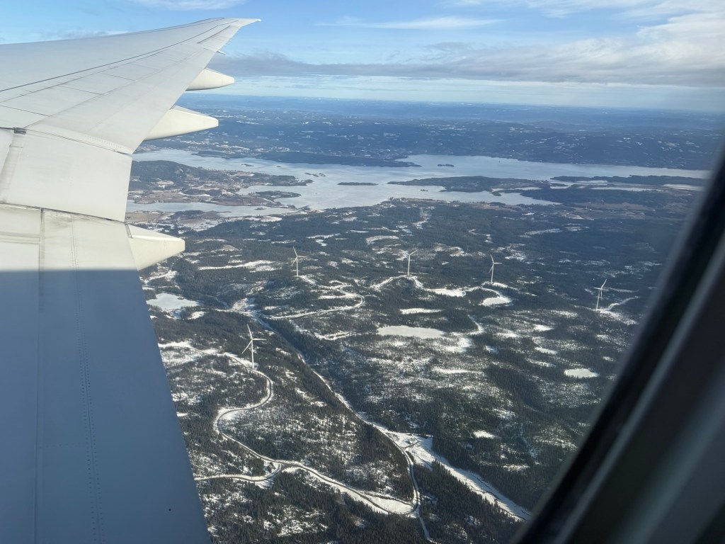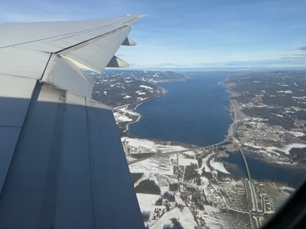 Snow still present on the Norwegian landscape and lakes iced up a bit. Some nice views from the plane windows.
