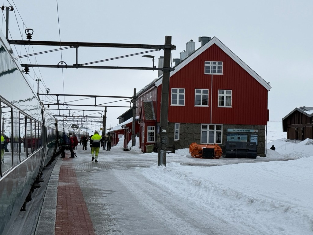 The highest point on the line is at Finse which is 1,222 metres above sea level. Finse is actually the highest railway station in northern Europe, it is really a ski resort. So the line rises and falls along the way.