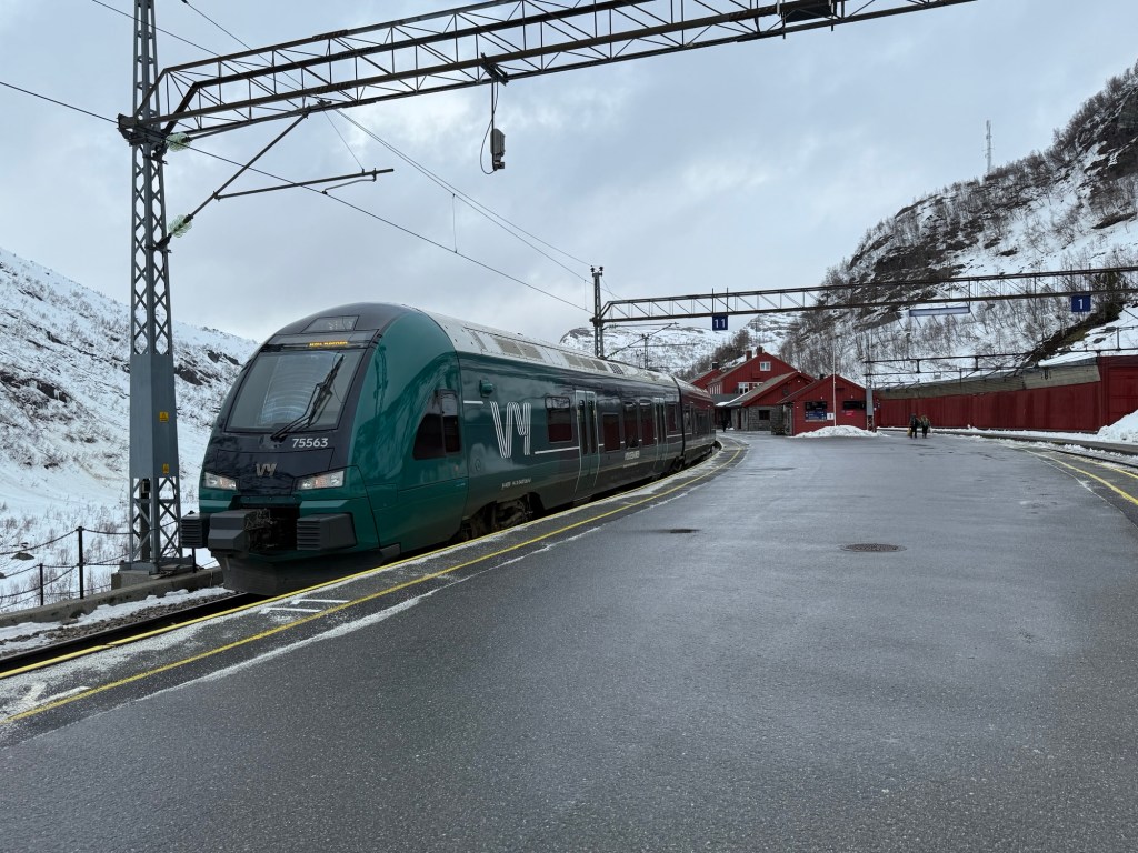 This section of the trip takes us to Myrdal and arrives at 11.15am, a four and three quarter hour trip through the countryside. Myrdal is 866 metres above sea level (Oslo) so it is a steady upward journey, some great scenery and snowy landscapes.