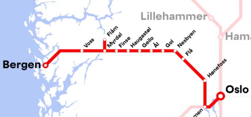 We are now starting the overland trip from Oslo to Bergen. Along the way we are stopping for two nights at Flam to break the trip up. Many do it all in a day as the ‘Norway in a Nutshell’ journey. Generally, you might do that in the summer months when the days are longer. But everyone does it then and there are a lot of people looking for seats on trains, ferries and buses. Bit of a mad rush too we think.