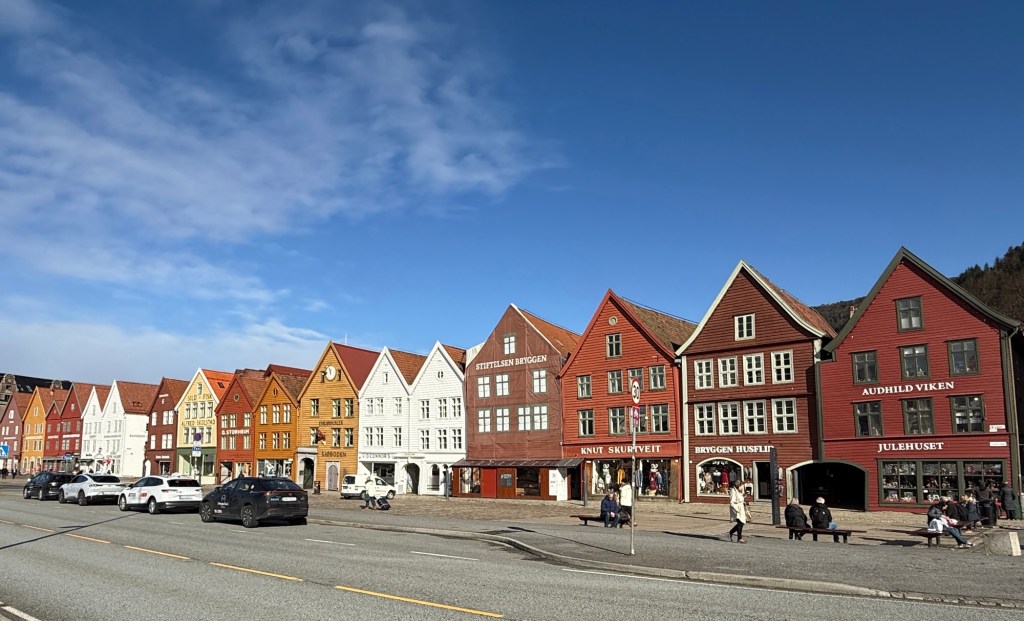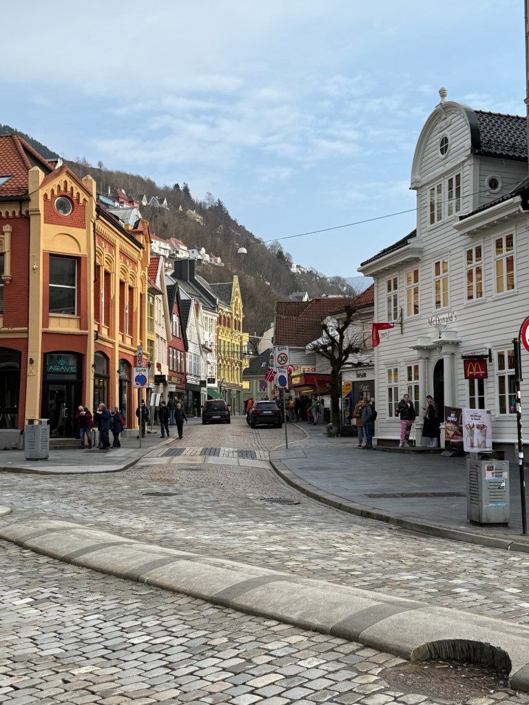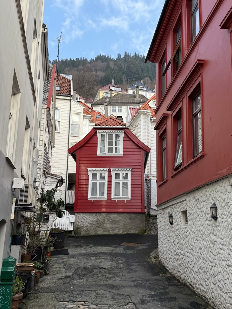 Bergen is Norway’s second largest city after Oslo, the greater Bergen area has about 400,000 people. Just on 300,000 of them live in or around the city, clinging to the shore land and a little way up the mountainside. The old town was founded around 1100, so it is not an old Viking town, post dating the viking era.
