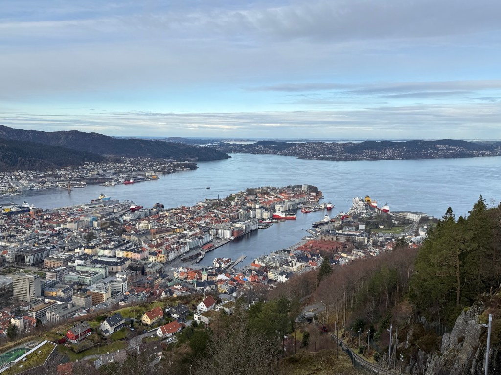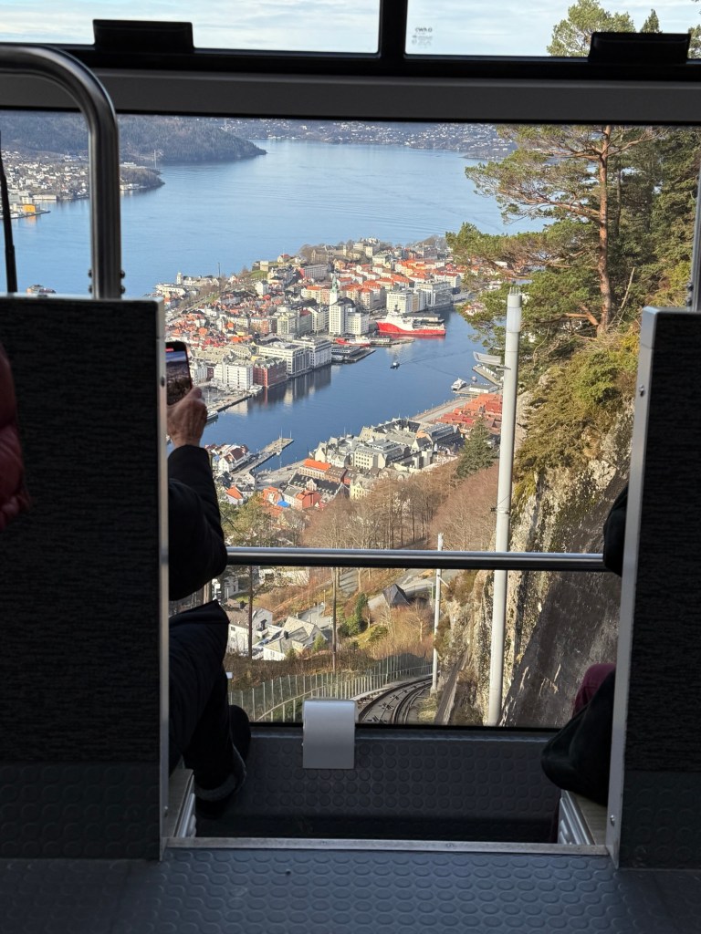 Allthego has been waiting for some clear skies to ride the Funicular up Mt Floyen, one of the seven mountains that lie behind Bergen.