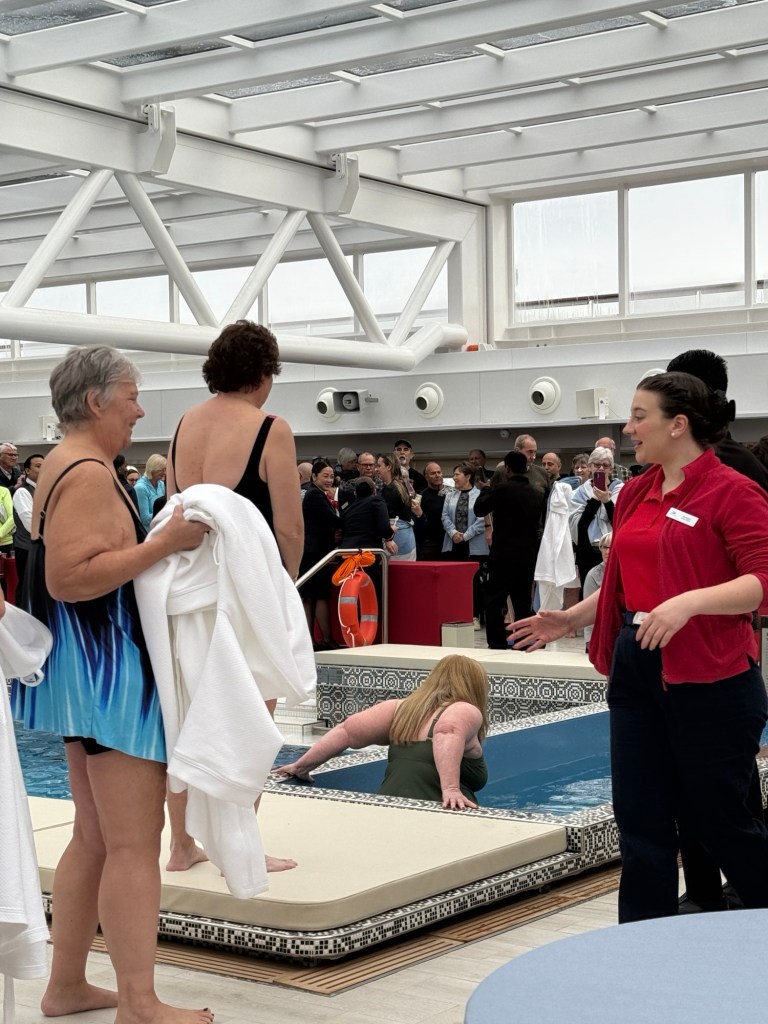 At this time there is also the celebration of the ‘Order of the Blue Nose’, passengers have a plunge in the pool spa that has been topped up with bags of ice. An interesting display of flesh took the plunge. Survival did not appear to be of concern. Allthego was tempted, but it was very cold!! Gave it a miss this time.