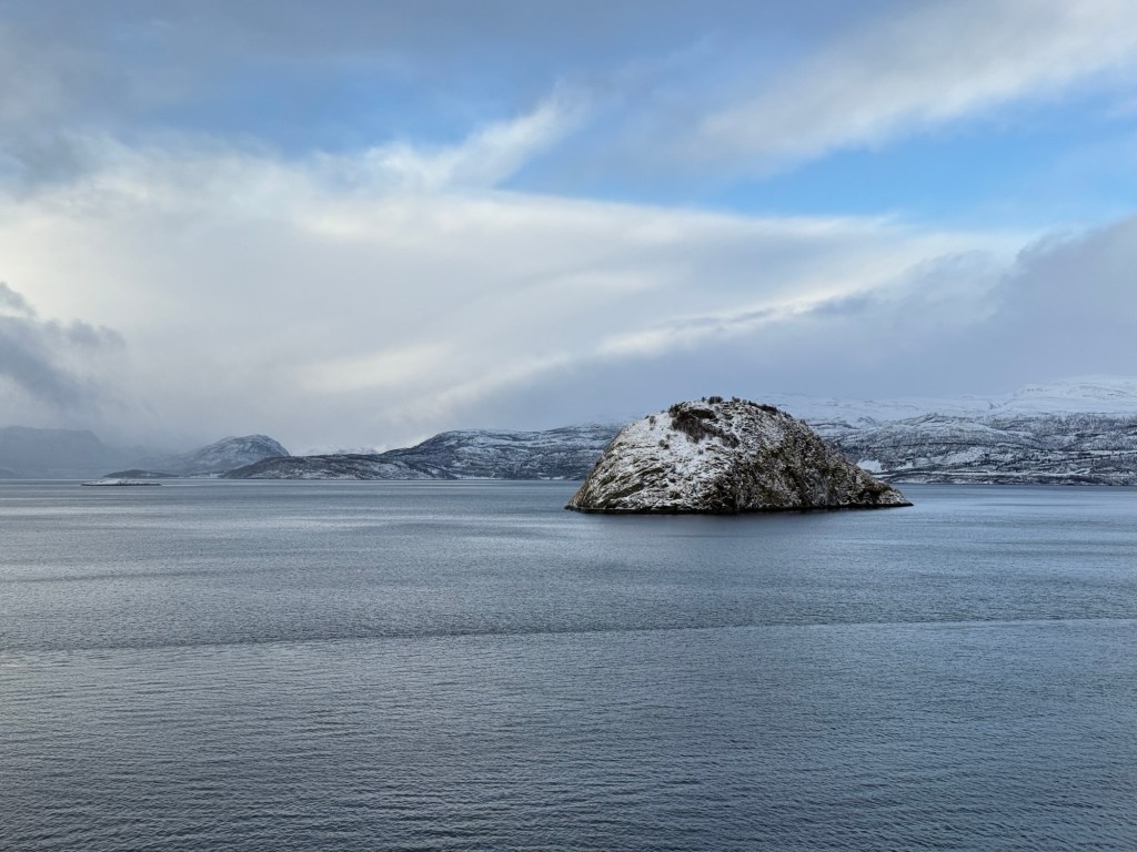 The planned sail away from Tromso was brought forward to early in the morning. The sail out along the fjord was quite smooth before we headed out into open ocean. We were to now have three clear sea days sailing south to Amsterdam. As we sailed south the seas did indeed get up a little. A swell of 3-4 metres had us rocking and rolling a little with some snow and sleet flurries. The ‘sicky bags’ appeared in the lifts, didn’t see any in use!