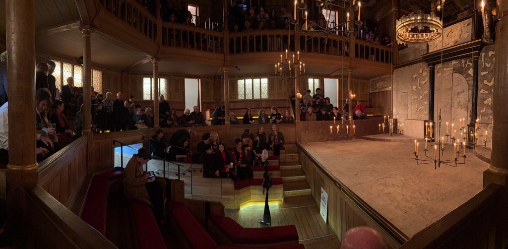 Bit of a slow trudge back to the hotel for a feet up before going to Shakespears Globe for a 6.30 presentation of the little presented Cymbeline. This was rather fun in the small Shakespearean era theatre recreation. The actors were all into it, with side comments to the audience and among themselves. Must read the play now!
