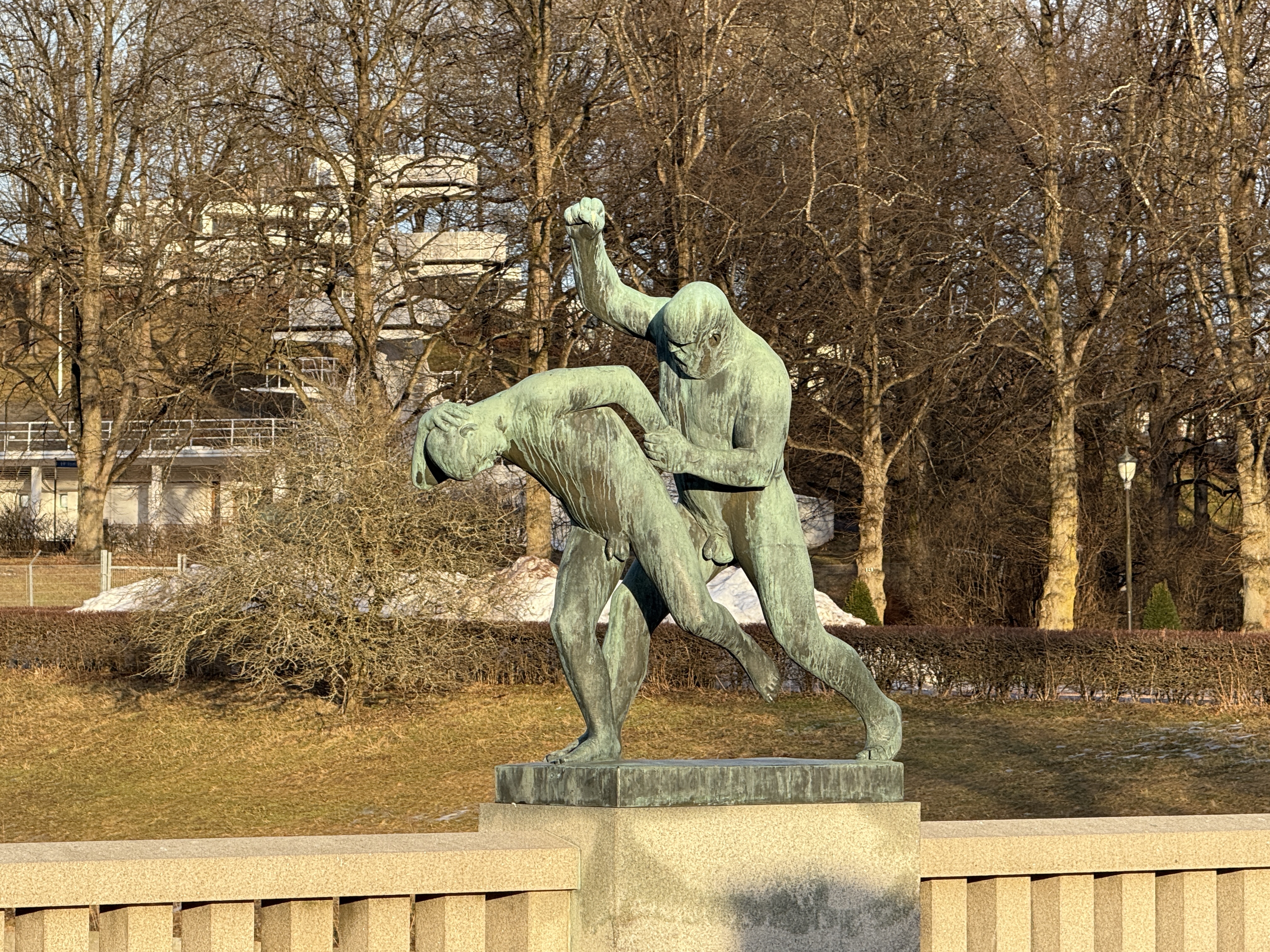We made our way further down from Holmenkollen to the railway station to catch the train back to the city. Along the way we stopped off at the Vigeland Sculpture Park. Vigeland was a famous sculptor from the early to mid 20 century. The City Council have put a lot of his sculptures up in this park. He seemed to have a strong focus on the human body and its various appendages. Enough said. All quite interesting but we needed to head off to get back to the hotel before dark.