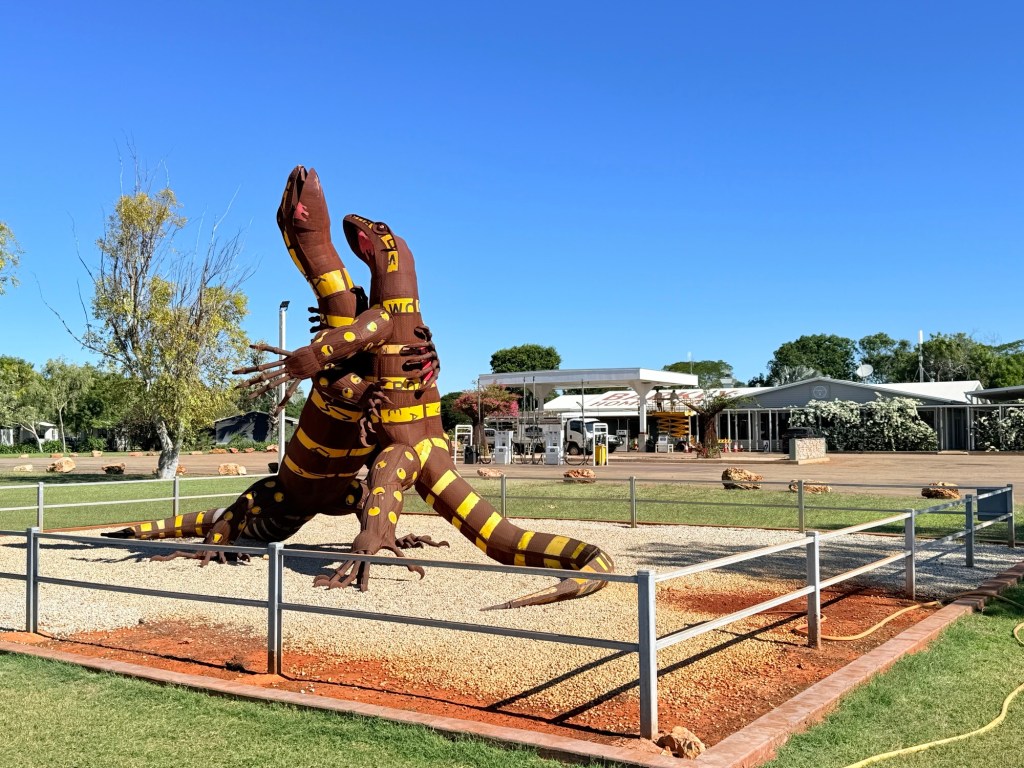The Barkly Homestead is an oasis along the highway and a great place to stop for the night. Well laid out grounds and facilities, some artwork to go with it too! We have had a relaxing afternoon in the shade, flicking flies away.