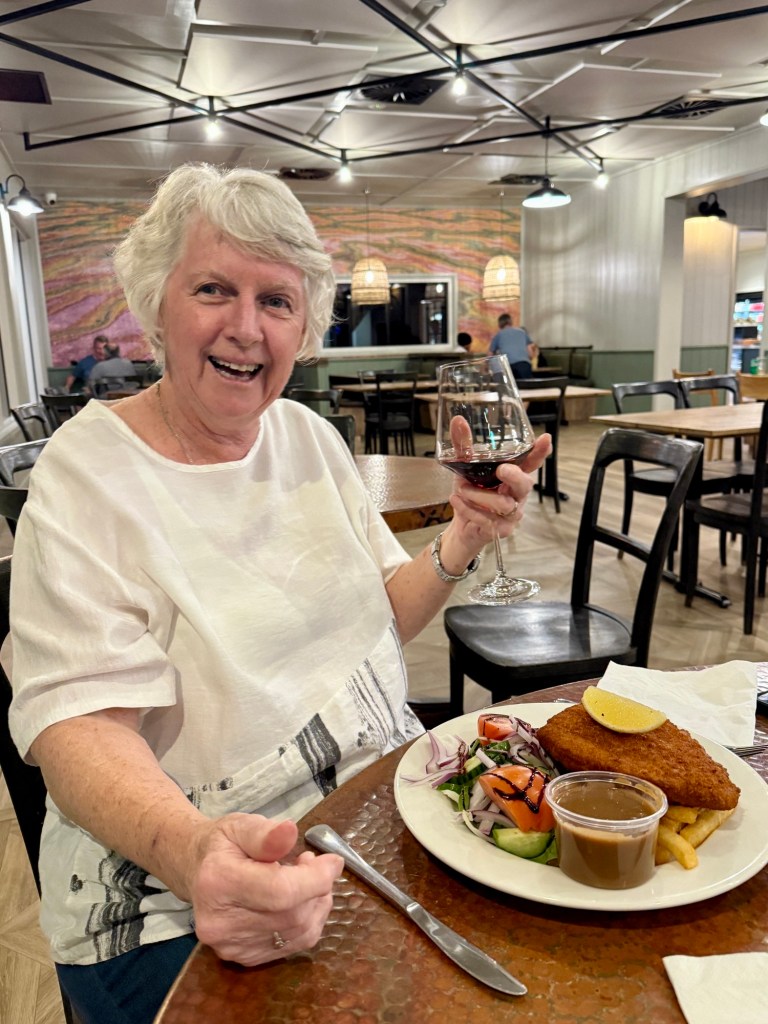 Pleasant afternoon in the shade beside the van relaxing. The pub is famous for its barra meals and dinner didn’t disappoint.